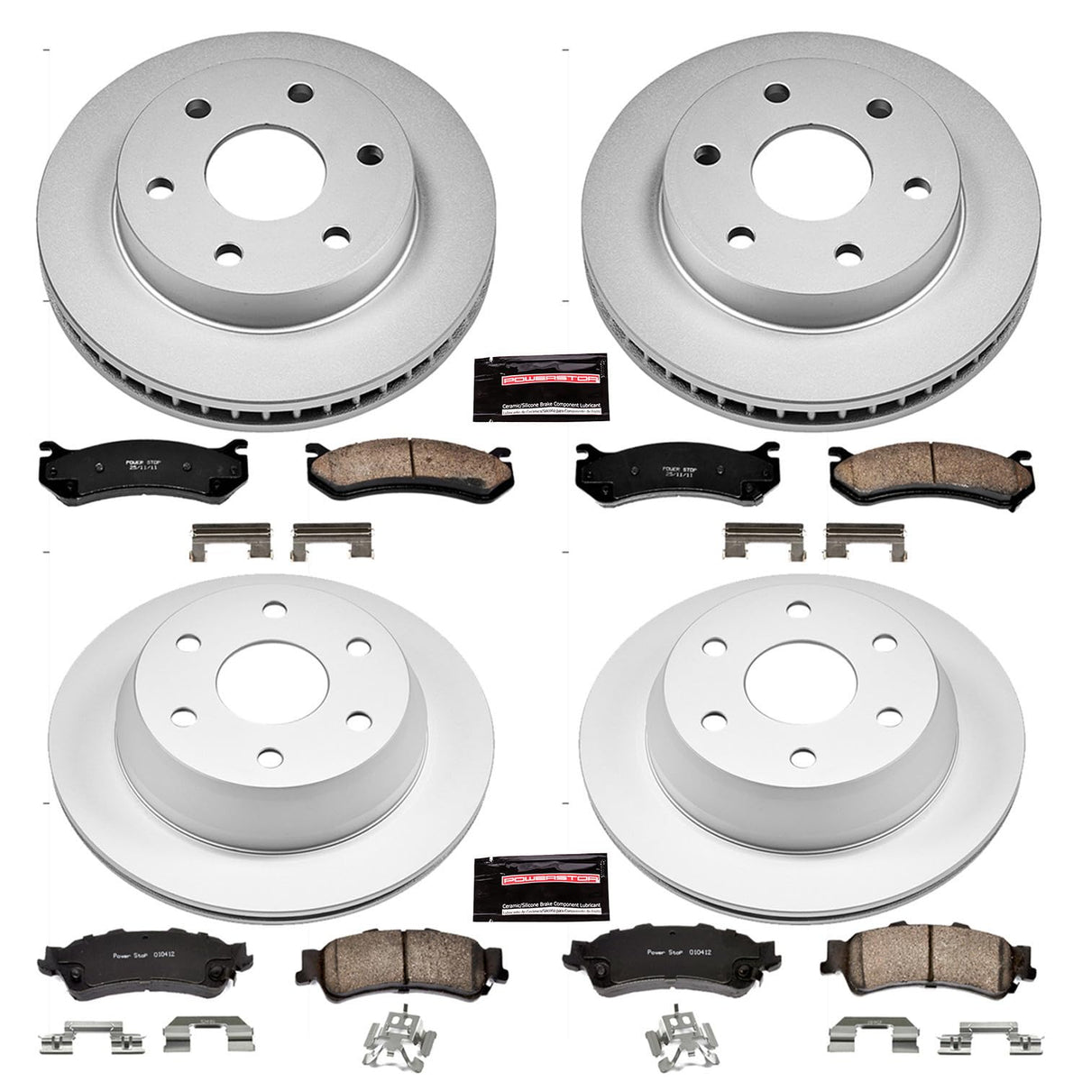 Power Stop Crk2010 Coated Brake Rotor & Ceramic Brake Pads- Front & Rear