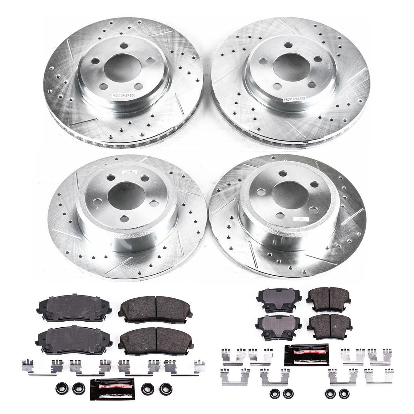 Power Stop K1715 Front And Rear Z23 Carbon Fiber Brake Pads With Drilled And Slotted Brake Rotors Kit For 2005-2021 Chrysler 300 V6 Rwd | Dodge Challenger Charger [Application Specific]