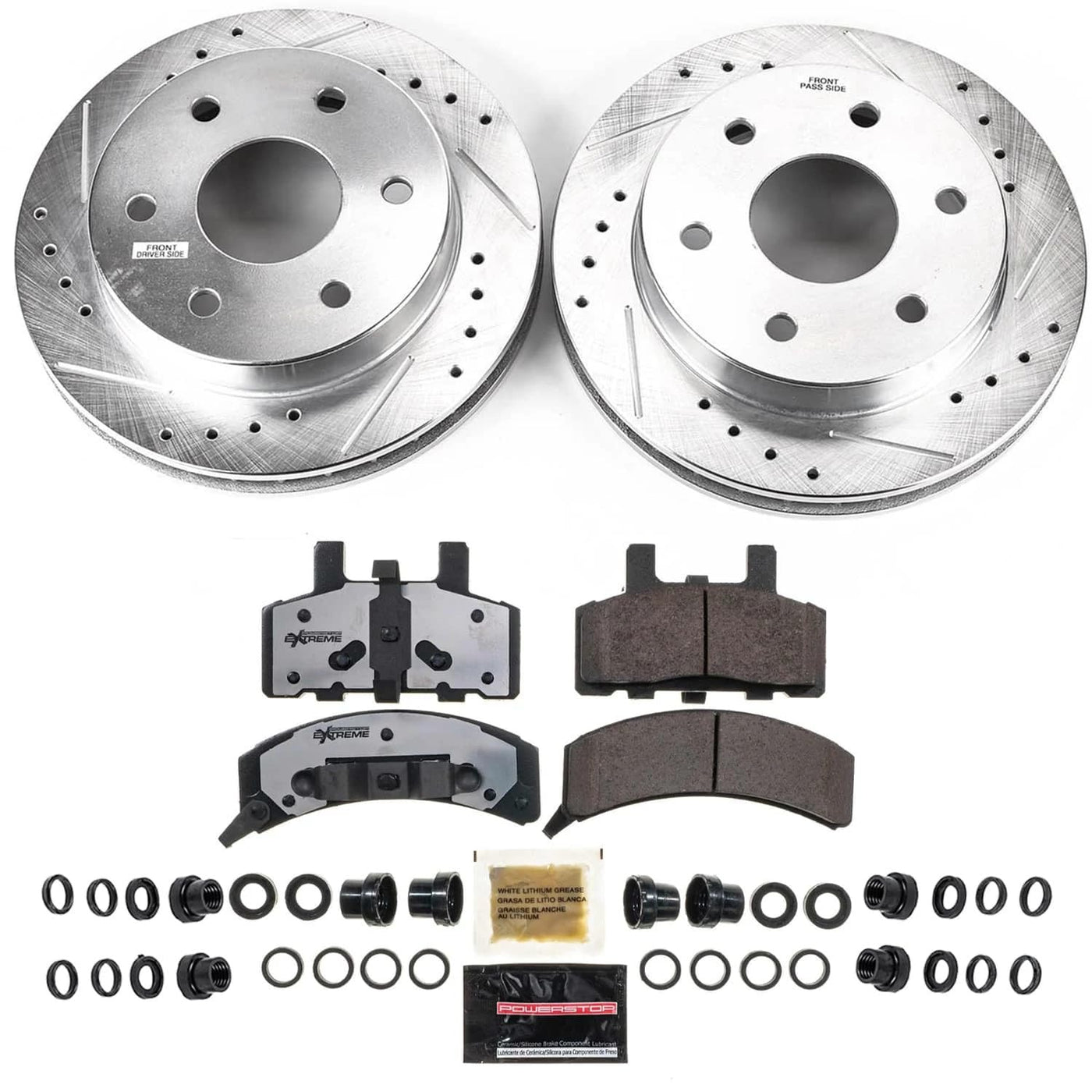 Power Stop K1970-36 Front Z36 Truck & Tow Brake Kit, Carbon Fiber Ceramic Brake Pads With Drilled And Slotted Brake Rotors For Chevy K1500 2500 Tahoe Yukon 4Wd 4X4 6Lug