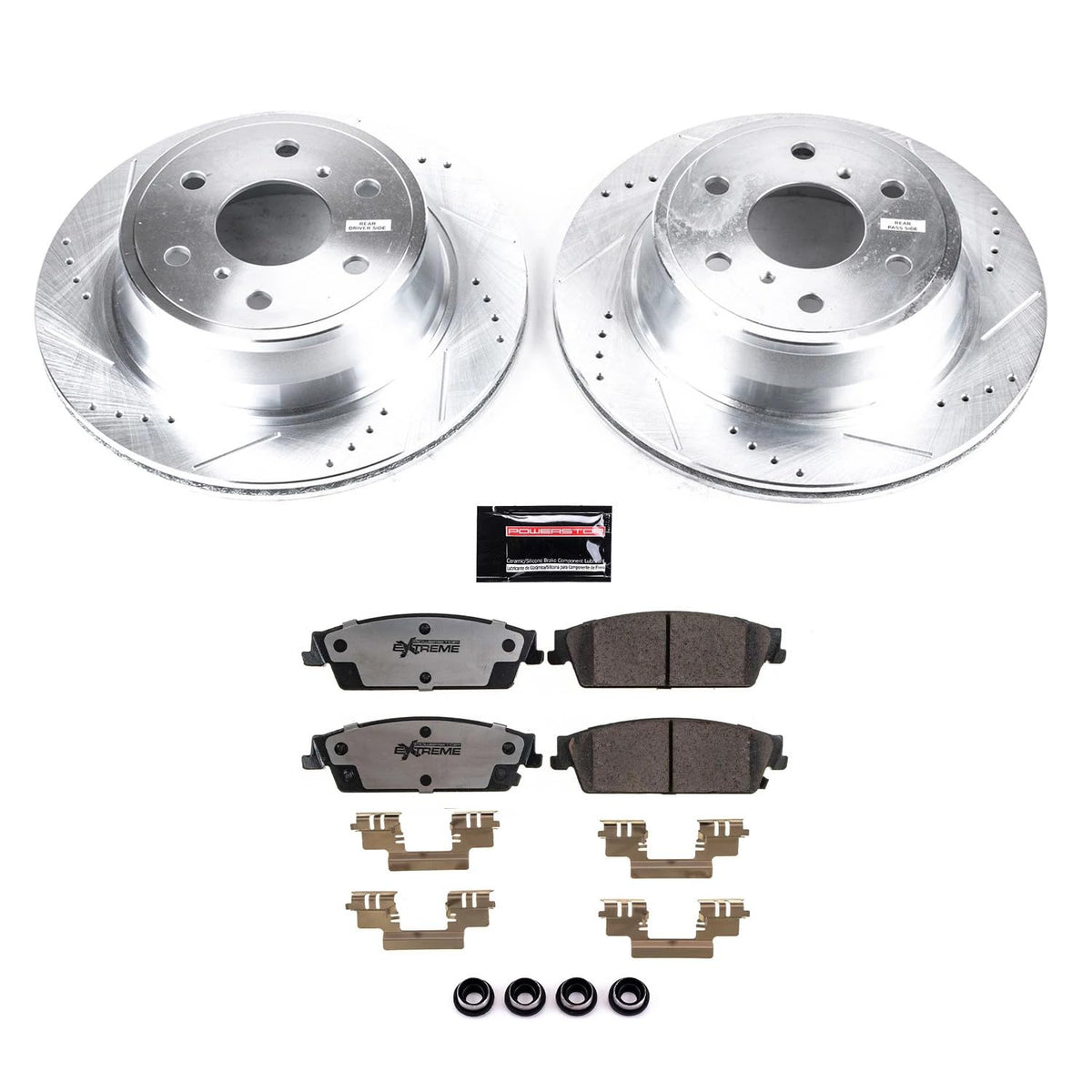 Q: How do the drilled and slotted rotors improve brake performance?A: Drilled and slotted rotors enhance brake performance by maximizing heat dissipation, which helps to keep brake temperatures down during heavy use. This feature is particularly beneficial when towing or navigating steep descents, ensuring consistent braking performance even in extreme conditions.