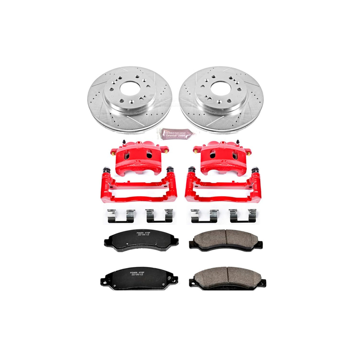 The Power Stop Z23 Evolution Sport Brake Upgrade Kit with Calipers makes it easy to increase the braking power of your daily-driver with quality components engineered to work together. Designed as a true upgrade over stock brakes, this kit will reduce brake dust & elimate noise so you can ride in comfort. Let Power Stop simplify your brake job by including everything you need in the box: perfectly matched drilled & slotted rotors, Z23 Evolution Sport carbon-fiber ceramic brake pads, red powder coated brake calipers, upgraded hardware, and high performance lubricant.