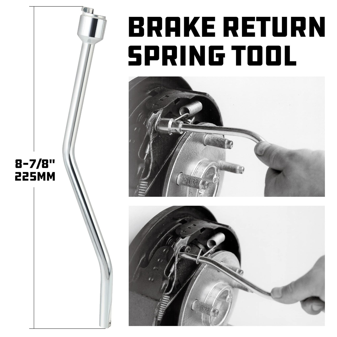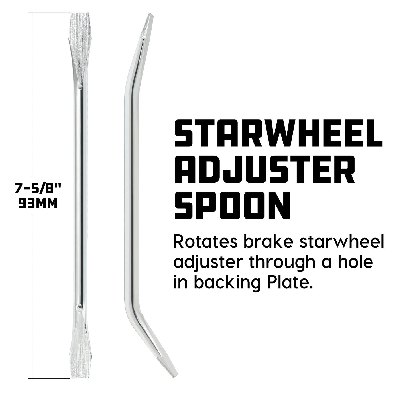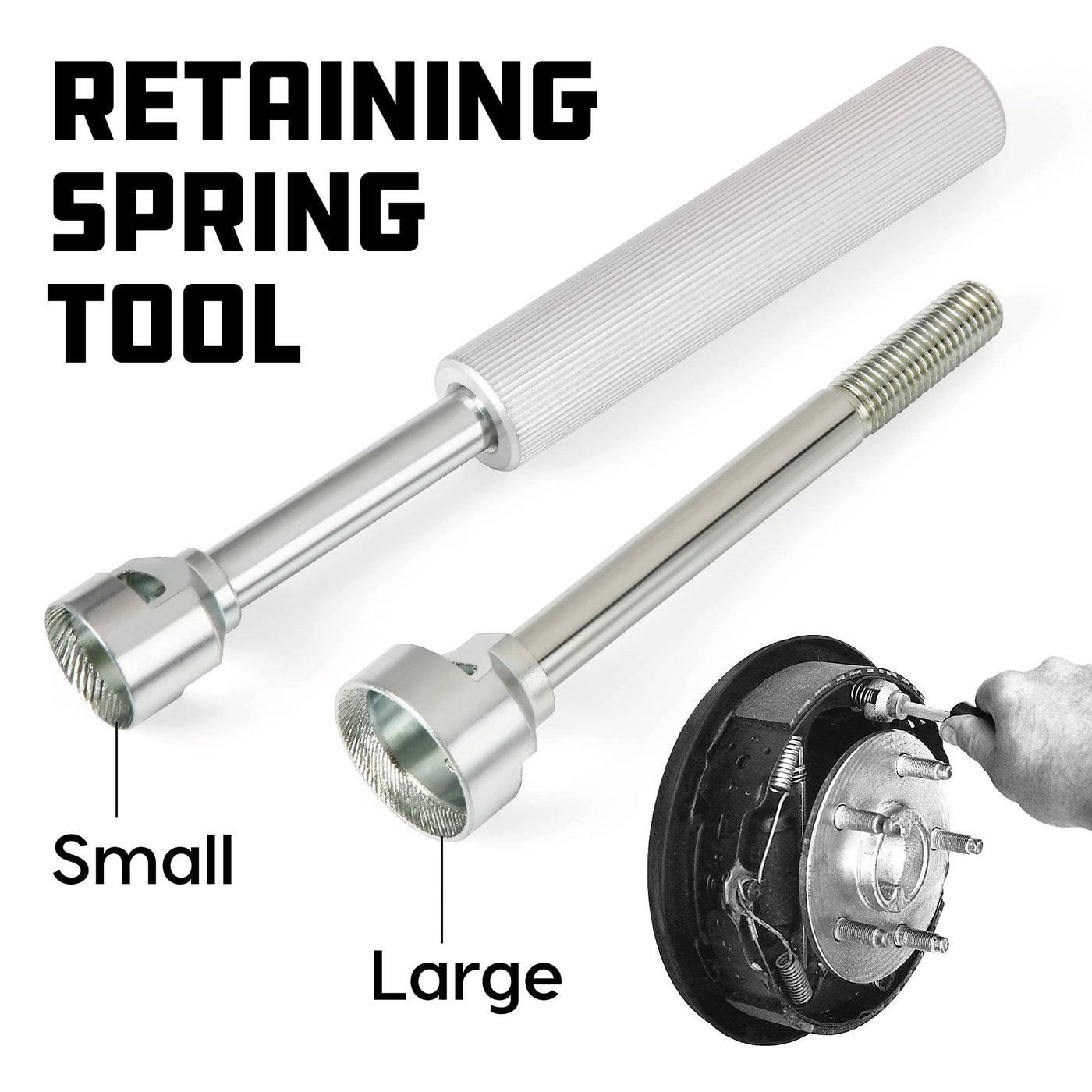 Q: What is included in the Powerbuilt 7 Piece Drum Brake Repair Kit?A: The kit includes essential tools for drum brake maintenance, such as 2 return spring tools, a starwheel adjuster spoon, and 3 retaining spring tools, all housed in a durable plastic storage case.