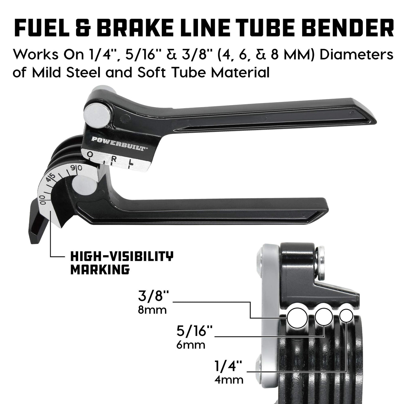 Powerbuilt Fuel And Brake Line Tubing Bender, Multi-Size Pipes Copper Aluminum Steel Brass, Bend Up To 180 Degrees, Lightweight