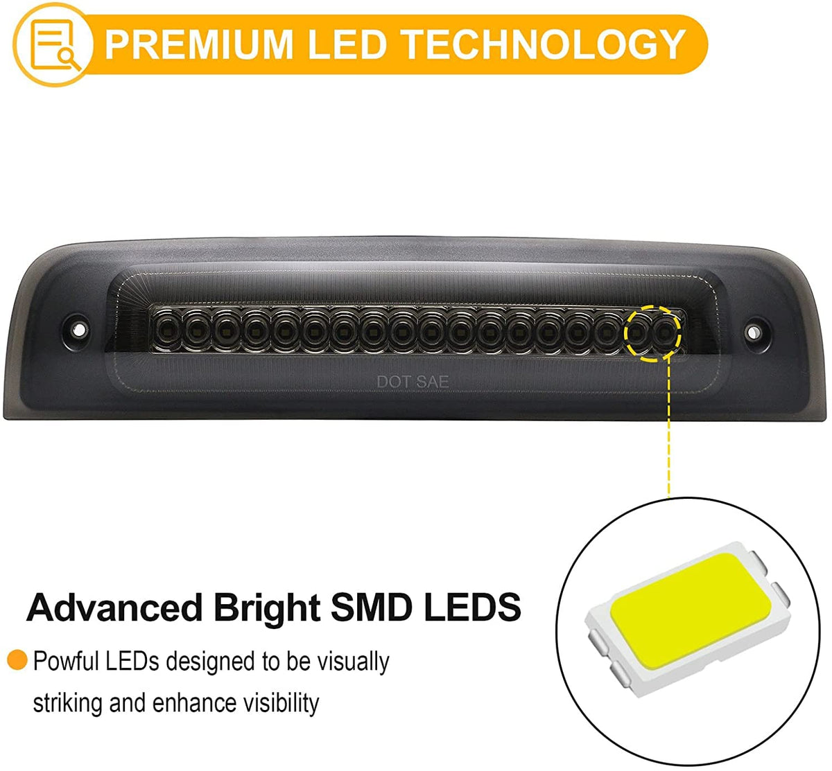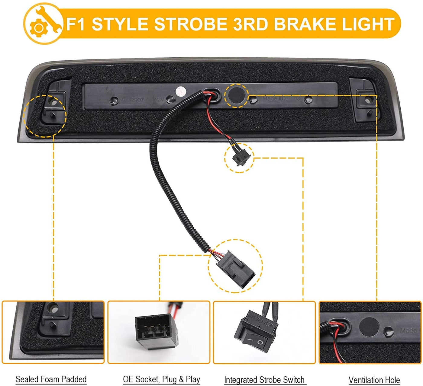 R&F Auto Led Strobe Third Brake Light Compatible With Ram 1500 2500 3500 4500 5500, 2010-2018, F1 Style Red Flash Smoked High Mo