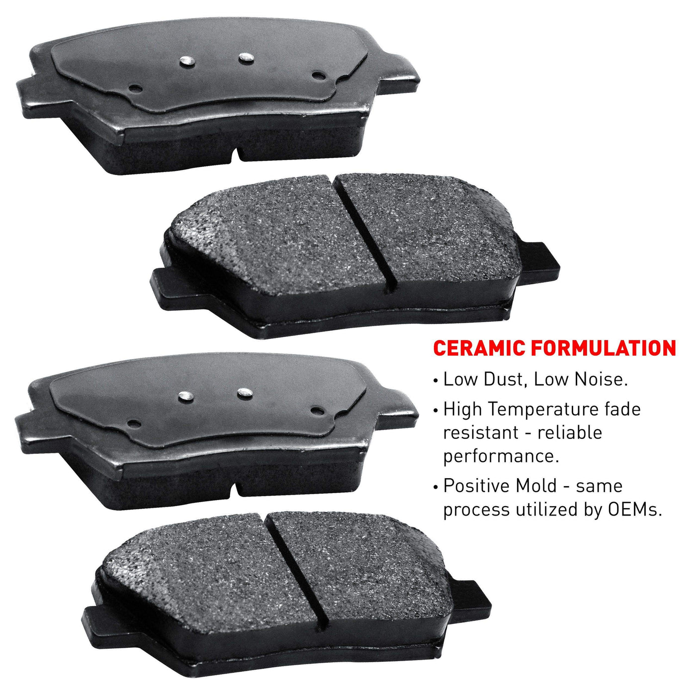 Q: Are the brake pads made from safe materials?A: Yes, the brake pads are formulated with a low-dust, asbestos-free ceramic material that offers excellent fade resistance. This makes them a top choice for both front and rear brake pad replacements, ensuring safety and performance.