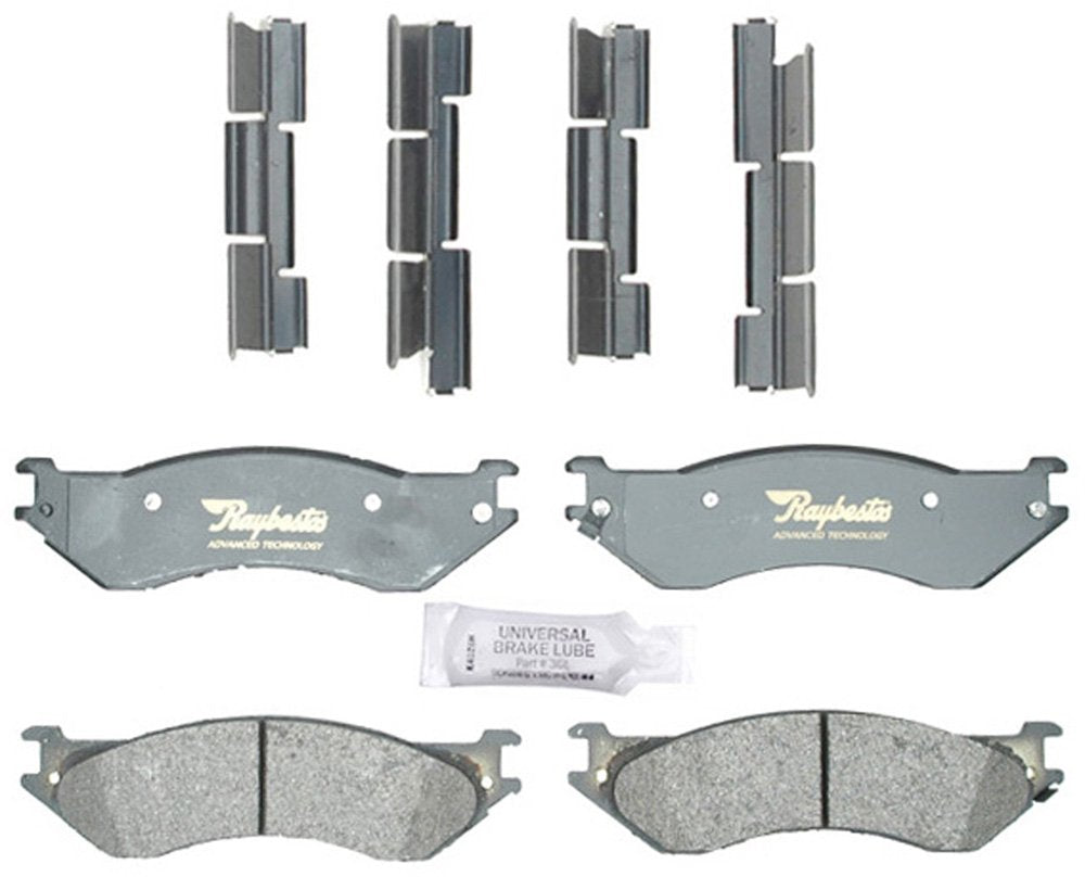 Product DescriptionEach Raybestos brand Advanced Technology disc brake pad is produced with the highest quality semi-metallic or ceramic formulations and feature integrally molded construction for superior strength.Amazon.comRaybestos Brake Pads are designed to provide excellent braking. These brakes utilize top quality formulations to defeat noise, dust and brake fade while delivering increased stopping power. Enjoy confident pedal feel from the very first stop. They are corrosion resistant and ensure easy installation. Choose the Raybestos Brake Pad That's Right for YouRegardless of the make and model of your vehicle, you have several options while selecting Raybestos brake pads. Use the guide below to better understand which Raybestos brake pad set is right for your vehicle. All Raybestos brake pads feature OE-compliant standards for strength and durability, with curing that means they're ready to install immediately, so you know regardless of the brake pad you choose that you're getting a consistent, predictable, and safe product.Raybestos Service Grade--The insdustry's most affordable quality line of friction with quiet operation and 95% vehicle application coverage, the Service Grade line offers value responsive coverage that satisfies the need of older vehicles and budget-conscious customers. The basic shims, slots, and chamgers provide the safety and reliability you expect from Raybestos while diminishing noise, vibration, and harshness.Raybestos Professional Grade--Raybestos Professional Grade OE-Matched friction materials match the original formulation for less noise and a smooth quiet ride. The semi-metallic material is enhanced by premium noise-dampening shims and OE-or-better slots and chamfers. Professional Grade features several upgrades to further reduce noise and increase pad life, including integrated abutment hardware, premium attached shims, and improved pedal feel and responsiveness. Professional Grade is also available in Police and Medium Duty applications.Raybestos Professional Grade Ceramic--Raybestos Professional Grade Ceramic friction materials match or improve on the OE ceramic formulation for operation thats clean, quiet and smooth. The ceramic material is low-dusting, strong, and silent, delivering a further improved pedal feel and enhanced responsiveness, while providing maximum stopping power and safety.Raybestos Advanced Technolgoy--Raybestos Advanced Technology disc brake pads utilize top quality formulations to defeat noise, dust and brake fade while delivering increased stopping power. Enjoy confident pedal feel from the very first stop. Advanced Technology brings features for the ultimate brake pad upgrade for severe duty, fleet, enthusiast/luxury, and high-performance applications, including nitrile-polymer-coated hardware, integral electronic wear sensors, and the highest quality spring-lock shims, slots, and chamfers.