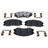 Q: What material are the Raybestos Element3 EHT™ brake pads made of?A: These brake pads are made from high-quality ceramic material, which is known for its durability, low dust production, and quiet operation, providing excellent performance under a variety of driving conditions.
