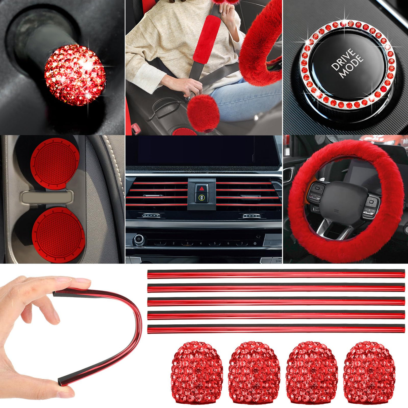 Features: Easy to clean: Car covers are usually very easy to clean and maintain. Most car covers can be easily removed and are machine or hand washable. Some car covers even have waterproof and stain resistant coatings to better resist liquid penetration and stains. This easy to clean feature makes car cover maintenance easy and convenient Guard seat: The car cover can effectively guard the seat from wear, stains caused by daily use. They cover the entire seat and provide an extra layer of protection against scratches, tears and color transfer. This way, your seat will always be clean, tidy and fresh. Specifications: Material: Rubber Color: as the picture shown Package includes: 2 x Front seat covers 5 x Car headrest covers 2 x Rear seat covers 1 x Plush steering wheel cover 1 x Handbrake cover 1 x Gear shift cover 2 x Car saucers 1 x Rearview mirror suspension accessory 2 x Ring stickers 2 x Seat belt pads 4 x Tire valve covers 20 x Car air vent decorations Notes: Manual measurement, please allow slight errors on size. The color may exist slight difference due to different screen displays