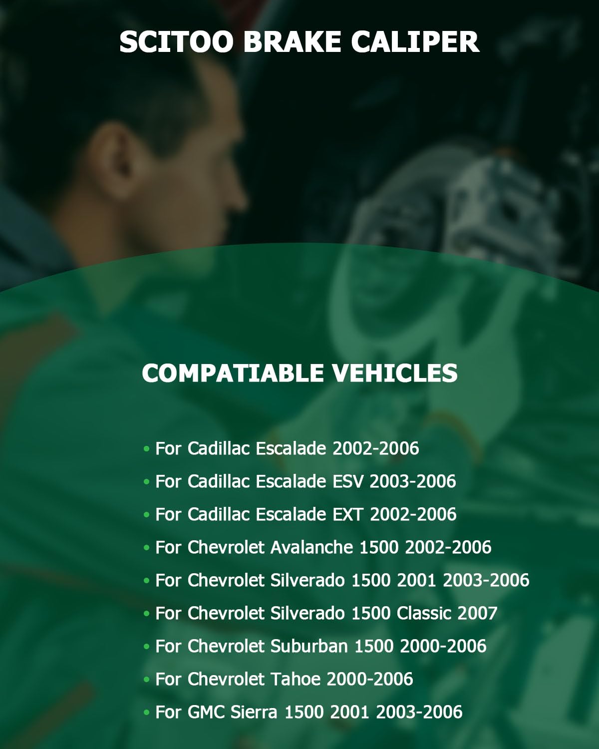 ?Compatible Vehicles?: Replacement For Cadillac For Escalade 02-06,For Cadillac For Escalade ESV 03-06,For Cadillac For Escalade EXT 02-06,For Chevrolet For Avalanche 1500 02-06,For Chevrolet For Silverado 1500 01 03-06,For Chevrolet For Silverado 1500 Classic 07,For Chevrolet For Silverado 1500 HD 03 05-06,For Suburban 1500 00-06,For Tahoe 00-06,For GMC For Sierra 1500 01 03-06,For Sierra 1500 Classic 07,For Sierra 1500 HD 01 03 05-06,For Yukon 00-06,For Yukon XL 1500 00-06 | ?Product Informations?: ?1PCS Disc Brake Caliper Assembly; ?Installation Position - Rear Driver Side; ?OE Number - 18-B4764; ?Bracket - With; ?Piston Material - Phenolic | ?Product Specifications?: ?Brake Piston Count - 2 Pistons; ?Piston Diameter - 1.77 Inch(45mm); ?Inlet Port Size - M10 x 1-6H; ?Bleeder Port Size - 5/16-24_UNF | ?Product Features?: SCITOO Brake Calipers are coated and multiple tests, meet or exceed OE standard. You will get the best performance and durability, whatever the conditions | ?Direct Installation?: With mounting hardware, designed to provide quick and easy installation without modification