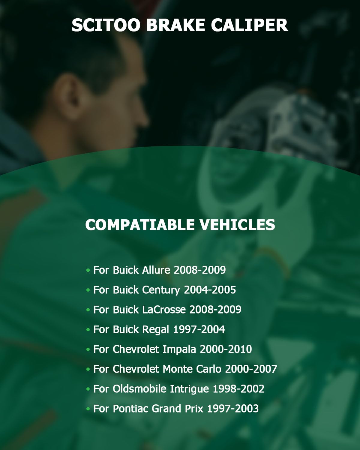 Specification:Placement on Vehicle: Rear Left and Right (Driver and Passenger Side)Brake Calipers:Bracket: withInlet Port Size: M10 x 1.5Bleeder Port Size: M10 x 1.5Piston Size: 38mmBrake Piston Count: 1 PistonPiston Material: IronCaliper Finish: ZincificationInterchange Part Number:Rear Left Disc Brake Caliper - Driver Side - 18B4644Rear Right Disc Brake Caliper - Passenger Side - 18B4645Package Includes: 2 x Brake CalipersCompatible with:(For More Details, Please Check ''FITMENT'' in the Upper Left Corner)For Buick Allure 2008-2009For Buick Century 2004-2005For Buick LaCrosse 2008-2009For Buick Regal 1997-2004For Chevrolet Impala 2000-2010For Chevrolet Monte Carlo 2000-2007For Oldsmobile Intrigue 1998-2002For Pontiac Grand Prix 1997-2003
