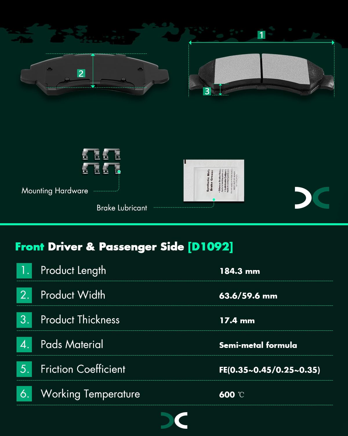 Scitoo D1092 Front Semi-Metal Brake Pads Sets Fit For Cadillac Escalade Esv/Ext,For Chevy Avalanche/Silverado 1500/Silverado 150
