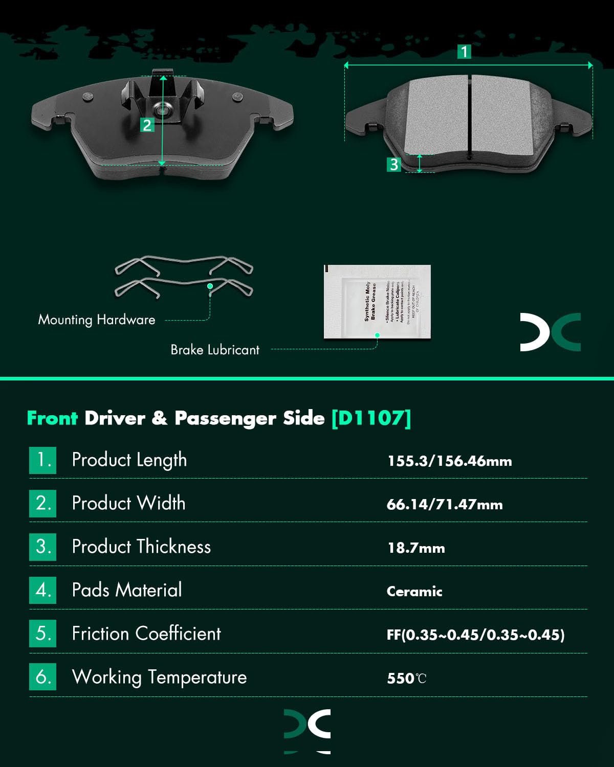 Scitoo D1107 D1456 Front Ceramic Rear Semi-Metal Brake Pad Sets Fit For Audi 2010-2012,For Volkswagen 2009-2018