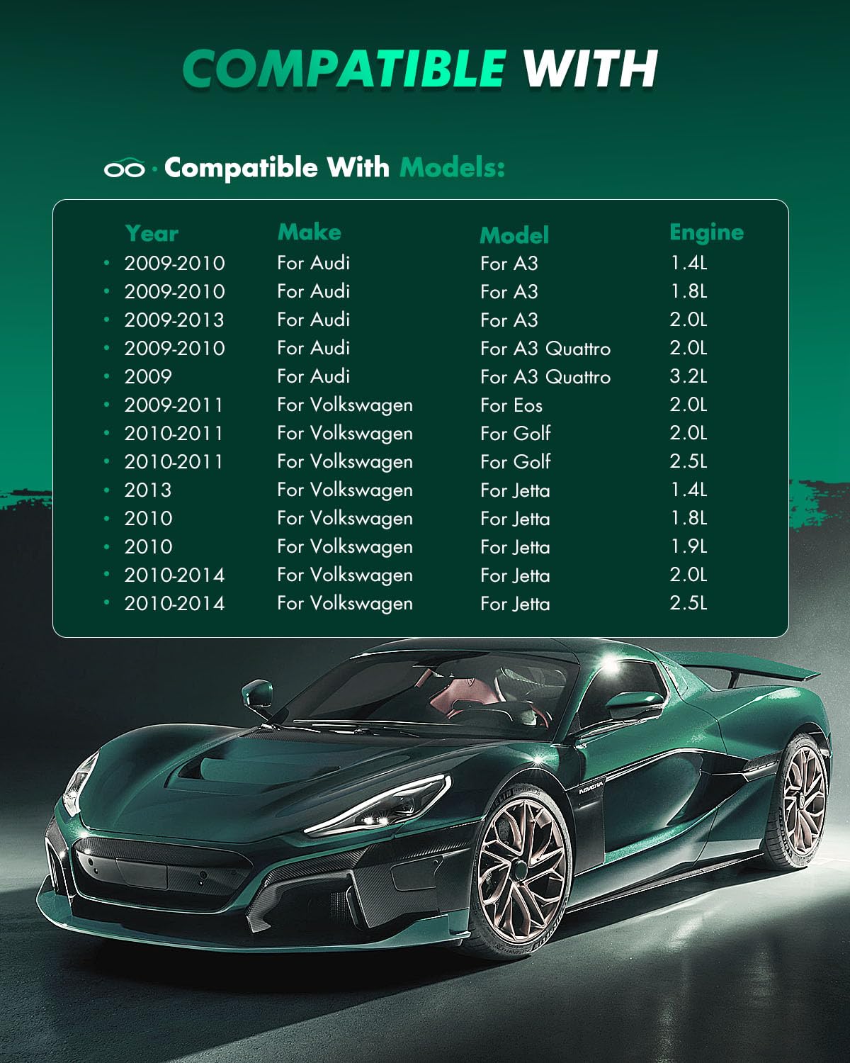 Compatibility Information:For AUDI For A3 2009-2010 [with 272mm Rear Rotor]For AUDI For A3 2011-2013 [Base]For AUDI For A3 QUATTRO 2009-2010 [with 272mm Rear Rotor]For VOLKSWAGEN For EOS 2009-2011 [with 272mm Rear Rotor]For VOLKSWAGEN For GOLF 2010 [7th And 8th Digit of VIN is AJ or 1K; Built After 11/2/09]For VOLKSWAGEN For GOLF 2011 [All Models]For VOLKSWAGEN For JETTA 2010-2011 [Models with 272mm Rear Rotor; 7th And 8th Digit of VIN is AJ or 1K]For VOLKSWAGEN For JETTA 2012 [Wagon or 2.5L Sedan; 4-Wheel Disc Brakes; Without Electronic Pad Wear Sensor; with 288mm / 312mm Rotor Diameter]For VOLKSWAGEN For JETTA 2013 [GLI, Hybrid, Hybrid SE, Hybrid SEL; Without Electronic Pad Wear Sensor; with 288mm / 312mm Rotor Diameter]For VOLKSWAGEN For JETTA 2013 [S, SE, TDI; Wagon; Without Electronic Pad Wear Sensor; with 288mm / 312mm Rotor Diameter]For VOLKSWAGEN For JETTA 2014 [TDI Wagon; Without Electronic Pad Wear Sensor]For VOLKSWAGEN For JETTA 2014 [2.5L; Without Electronic Pad Wear Sensor]