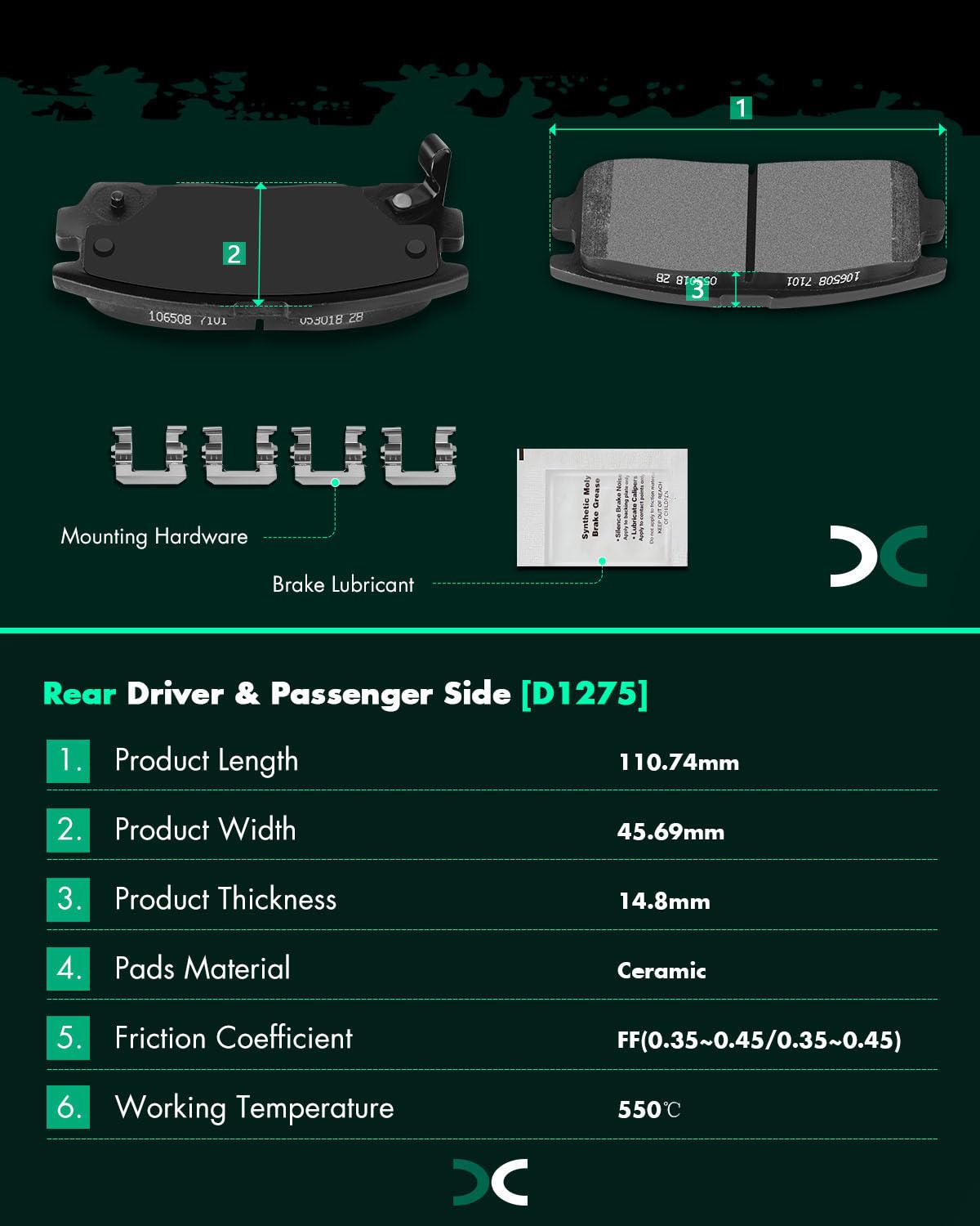 Scitoo D1264 D1275 Front Rear Ceramic Brake Pads Sets Fit For Chevy Captiva Sport 12-15,For Chevy Equinox 2007-2009,For Pontiac