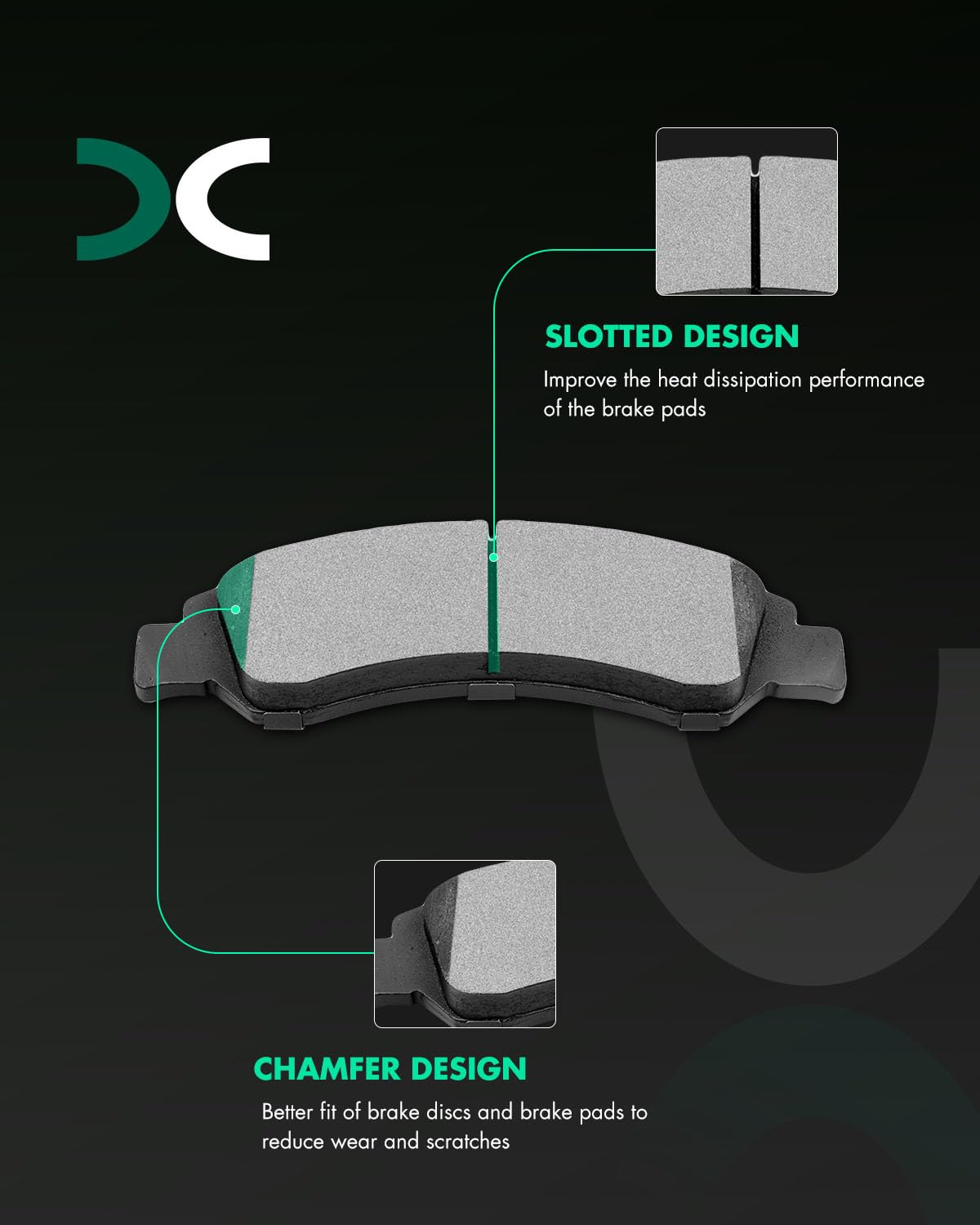 Compatible Vehicles : 4Pcs Brake Pads For Cadillac Escalade 2008-2020,For Cadillac Escalade Esv 2008-2020,For Cadillac Escalade Ext 2008-2013,For Cadillac Xts 2013-2019,For Chevrolet Avalanche 2008-2013,For Chevrolet Express 1500 2009-2014 | Compatible Vehicles : For Chevrolet Silverado 1500 2005-2018,For Chevrolet Suburban 2015-2020,For Chevrolet Suburban 1500 2008-2014,For Chevrolet Tahoe 2008-2020,For Gmc Savana 1500 2009-2014,For Gmc Sierra 1500 2005-2018,For Gmc Yukon 2008-2020,For Gmc Yukon Xl 2015-2020,For Gmc Yukon Xl 1500 2008-2014 | Used For : The Gasket Serves As A Buffer Between The Caliper Piston And The Brake Pad Back Plate. They Act To Absorb Vibrations,Which Will Reduce Noise | Brake Pads Feature : The Pads With Slotting Design Increases Friction, Heated Evenly, Heat Faster,Better Ventilation, Improves Drainage.Ensure Exceptional Stopping Power And Quiet Operation | Easy Installation : Manufactured To Precise Oe Requirements To Meet Your Car'S Needs.Designed To Be Integrated, Easy To Install And Save Time