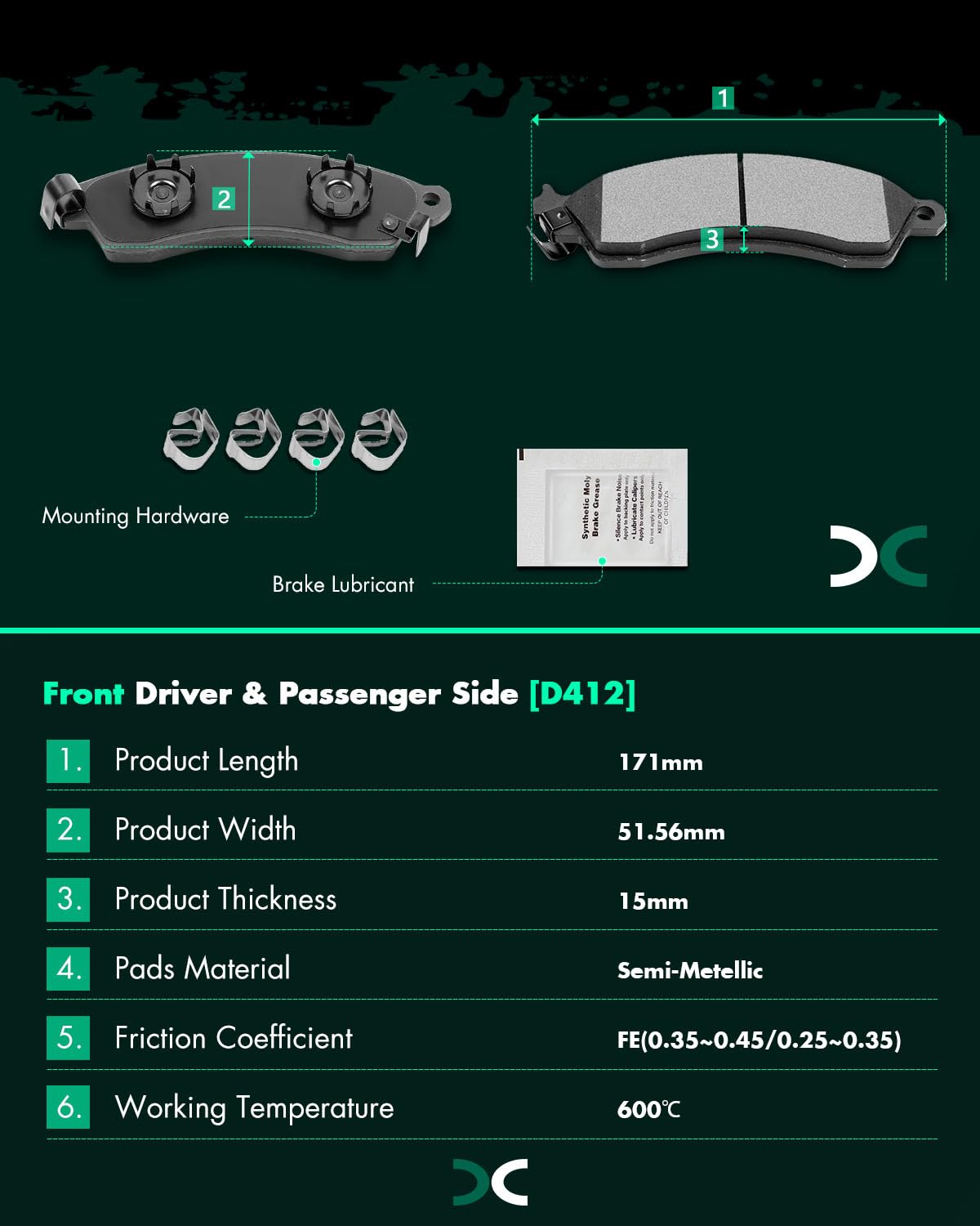 Scitoo D412 Semi-Metal Brake Pads Kits Front Replacement For Chevrolet Camaro 1988-1991,For Chevrolet Corvette 1988-1996,For Pon