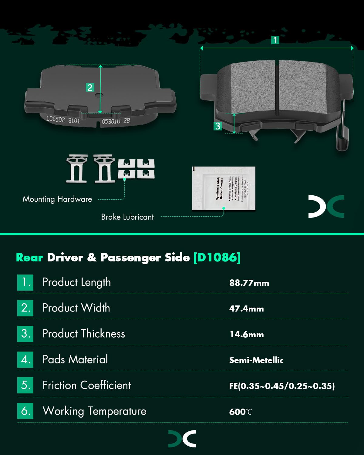 SCITOO D914 D1086 Front Ceramic Rear Semi-Metal Brake Pad Sets Fit For Honda CR-V 2005-2006 2012-2016