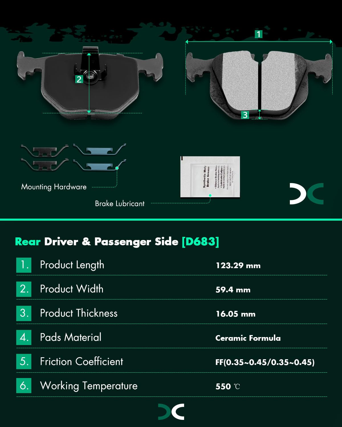 SCITOO D946 D683 Front Rear Ceramic Brake Pads Sets Fit For BMW 330Ci 2001-2006,For BMW 330i 2001-2005,For BMW 330xi 2001-2005,F