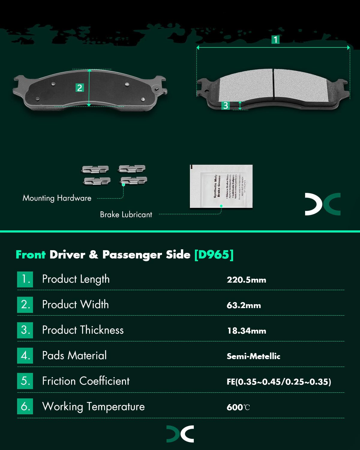 Scitoo D965 D702 Front Rear Semi-Metal Brake Pads Sets Fit For Dodge Ram 1500 2006-2008,For Dodge Ram 2500 2003-2008,For Dodge R