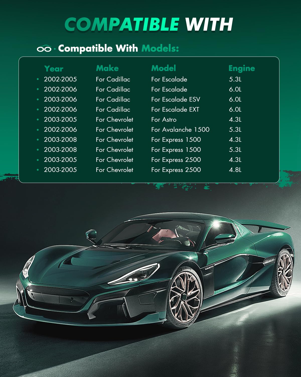 OEM PART NUMBER(S):4 x Rear Brake Pads- ATD785C,D785-7653Fitment:For Cadillac For Escalade 5.3L 2002-2005For Cadillac For Escalade 6.0L 2002-2006For Cadillac For Escalade ESV 6.0L 2003-2006For Cadillac For Escalade EXT 6.0L 2002-2006For Chevrolet For Astro 4.3L 2003-2005For Chevrolet For Avalanche 1500 5.3L 2002-2006For Chevrolet For Express 1500 4.3L 2003-2008For Chevrolet For Express 1500 5.3L 2003-2008For Chevrolet For Express 2500 4.3L 2003-2005For Chevrolet For Express 2500 4.8L 2003-2005For Chevrolet For Express 2500 5.3L 2003-2005For Chevrolet For Express 2500 6.0L 2003-2005For Chevrolet For Silverado 1500 4.3L 1999-2006For Chevrolet For Silverado 1500 4.8L 1999-2006For Chevrolet For Silverado 1500 5.3L 1999-2006For Chevrolet For Silverado 1500 6.0L 2003-2006For Chevrolet For Suburban 1500 5.3L 2000-2006For Chevrolet For Suburban 1500 5.7L 2000-2002For Chevrolet For Suburban 1500 6.0L 2006For Chevrolet For Tahoe 4.8L 2000-2006For Chevrolet For Tahoe 5.3L 2000-2006For Chevrolet For Tahoe 5.7L 2000For GMC For Safari 4.3L 2003-2005For GMC For Savana 1500 4.3L 2003-2008For GMC For Savana 1500 5.3L 2003-2008For GMC For Savana 2500 4.3L 2003-2005For GMC For Savana 2500 4.8L 2003-2005For GMC For Savana 2500 5.3L 2003-2005For GMC For Savana 2500 6.0L 2003-2005For GMC For Sierra 1500 4.3L 1999-2006