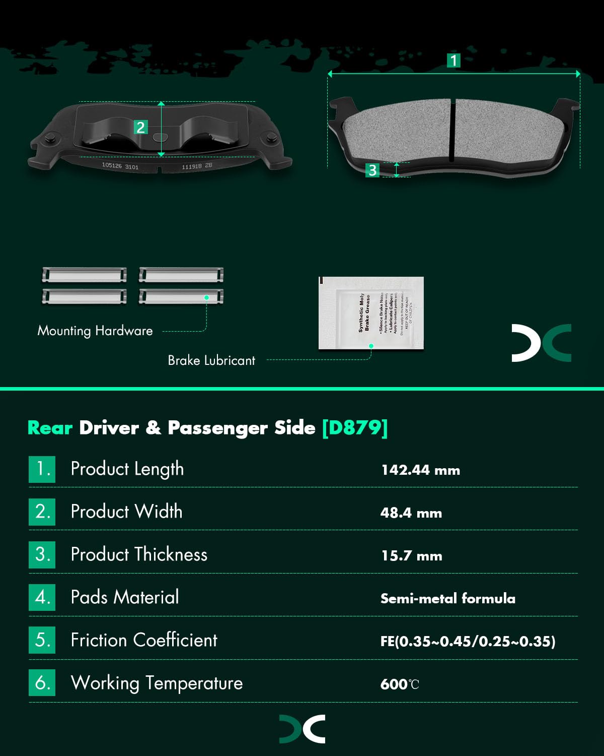 Compatible Vehicles - For Ford For Expedition 1997 1998 1999 2000 2001 2002,For Ford For F-150 1996 1997 1998 1999 2000 2001 2002 2003,For Ford For F-250 1997 1998 1999,For Ford For F-250 HD 1997,For Lincoln For Blackwood 2002,For Lincoln For Navigator 1998 1999 2000 2001 2002,For Lincoln For Town Car 2003 2004 2005 2006 2007 2008 2009 2010 2011 | Specification ---- D879-7584 Rear Pads -- Thickness of Friction Material: 15.7 mm;Friction coefficient: FE(0.35~0.45/0.25~0.35);Tolerant Temperature: 600?;Brake Pads Thickness: 39.1mm;Product length: 142.44mm;Product width: 48.4mm | Feature - 4 x Brake Pads Design to further reduce brake noise and increase 20% more braking power | Ultra Durable Quality - Our Brake Pads Kits accessories are made of extremely durable materials and work well without sacrificing functionality | Buyer Notice - Please check picture,part number and fitment information to verify if this is the correct one you need before purchasing.Please get in touch with us at any time if the product has any issues.We offer a wide variety of Brake Pads/Brake Rotors/Brakes Kits, so there's one to match your car