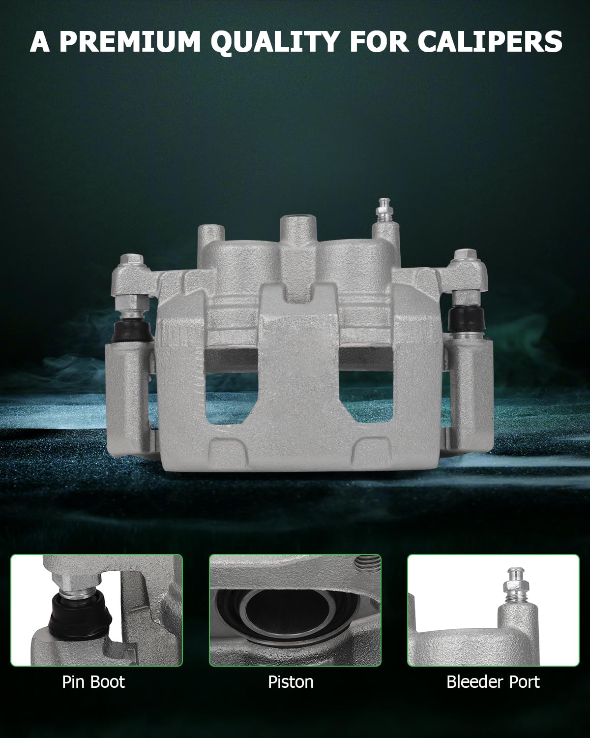 Specification:Placement on Vehicle: Front Left and Right (Driver and Passenger Side)Brake Calipers:Bracket: withInlet Port Size: M10 x 1.5Bleeder Port Size: M10 x 1.5Piston Size: 45mmBrake Piston Count: 2 PistonPiston Material: IronCaliper Finish: ZincificationInterchange Part Number:Front Left Disc Brake Caliper - Driver Side - 18B4988Front Right Disc Brake Caliper - Passenger Side - 18B4989Package Includes: 2 x Brake CalipersCompatible with:(For More Details, Please Check ''FITMENT'' in the Upper Left Corner)For Buick 2006-2011For Chevrolet 2003-2013