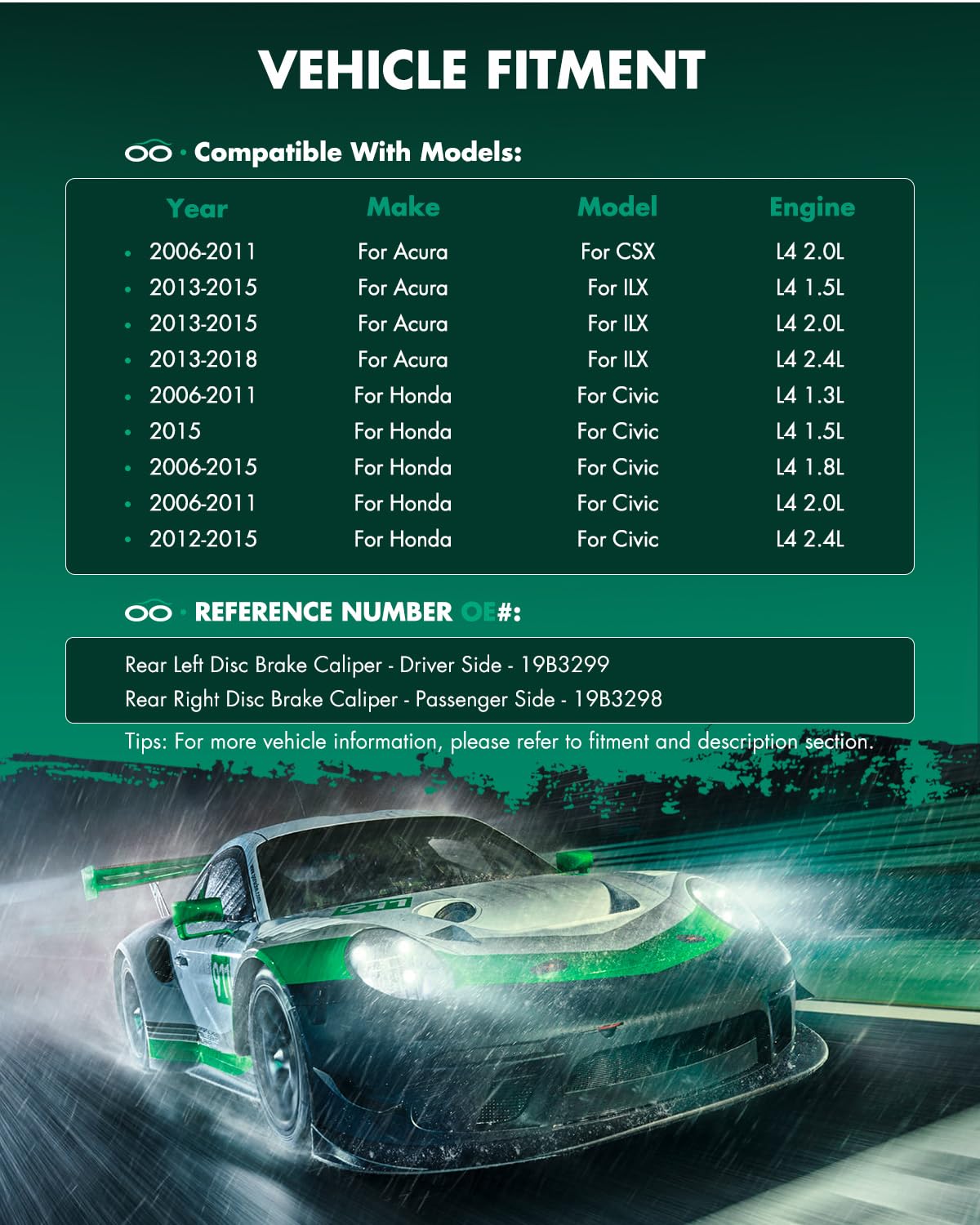 Scitoo Rear Disc Brake Caliper 19B3299 19B3298 Fit For Acura 2006-2011 2013-2018 For Honda 2006-2015(2 Brake Calipers)