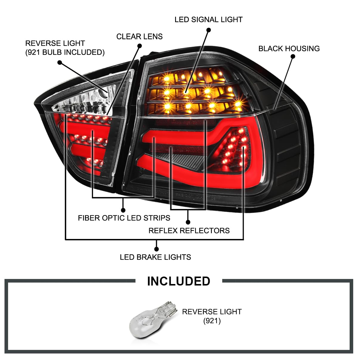 Spec-D Tuning Black Led Tail Lights Rear Brake Lamps Compatible With 2005-2008 Bmw E90 3-Series 4Dr Sedan Left + Right Pair Asse