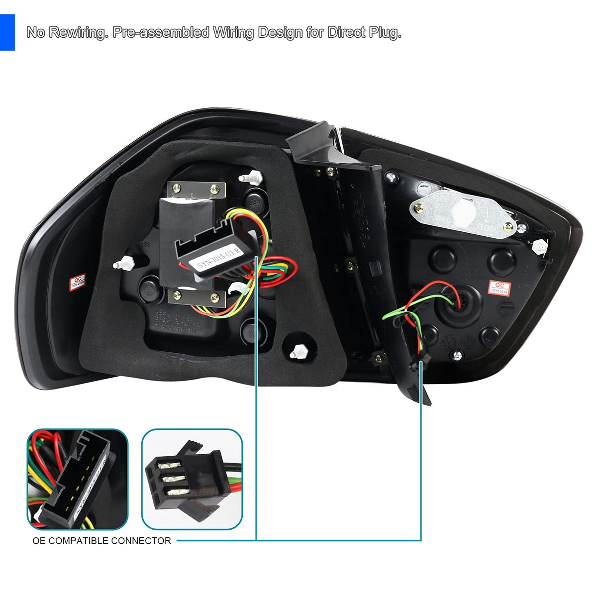 Q: What is included in the package when purchasing these tail lights?A: The package includes one pair of black housing clear lens tail lights with LED strips, specifically designed for the driver side (left) and passenger side (right) of the vehicle.