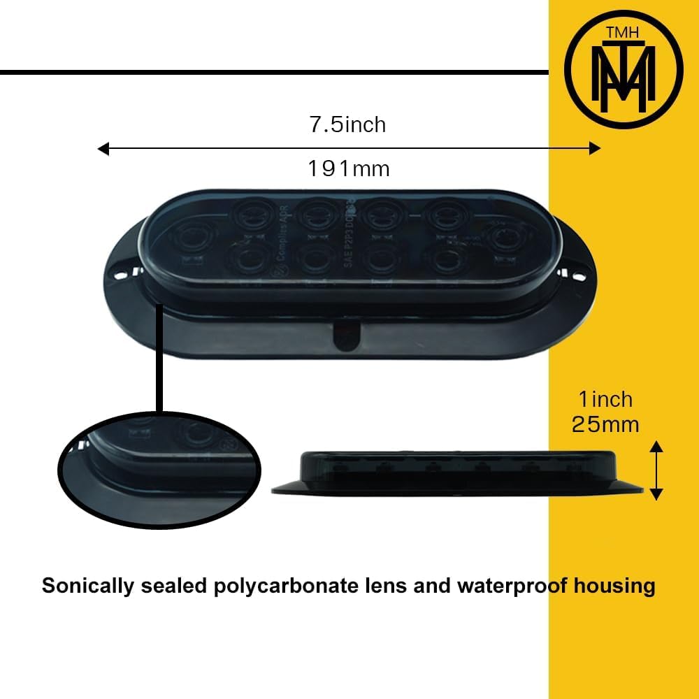 Tmh 6'' Oval Smoked Lens/Red Led Trailer Tail Light Surface Mount 10 Led Waterproof Stop Brake Turn Trailer Lights For Truck Rv