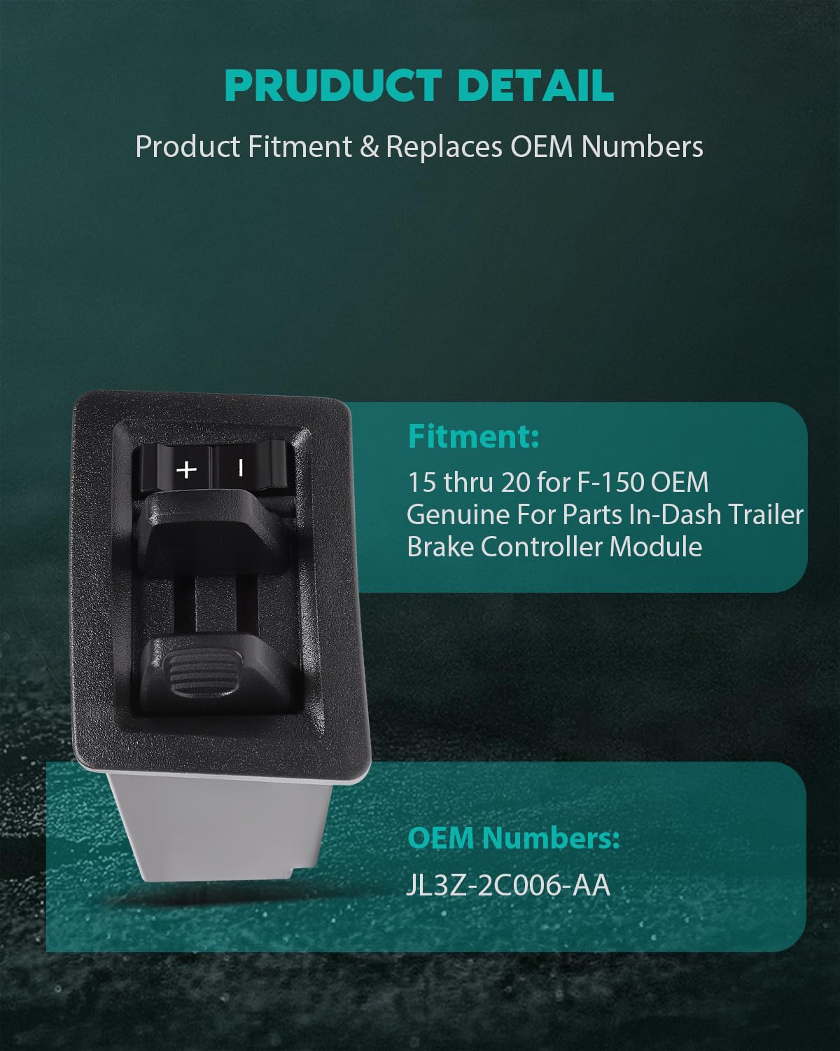 Q: What vehicles is the Trailer Brake Controller Module compatible with?A: The Trailer Brake Controller Module is compatible with Ford F-150 models from 2015 to 2020, ensuring a perfect fit for your vehicle.