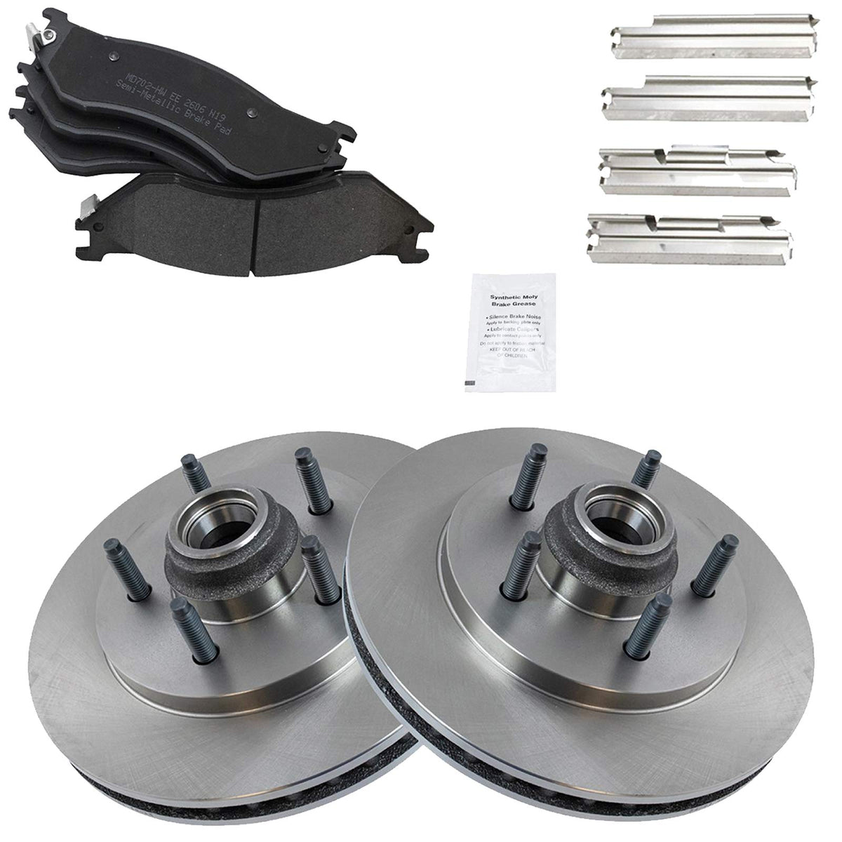 Trq Front Brake Pad & Rotor Kit Brake Pads Brake Rotor Semi-Metallic Compatible With 1999-2002 Ford Expedition 1998-2002 Lincoln