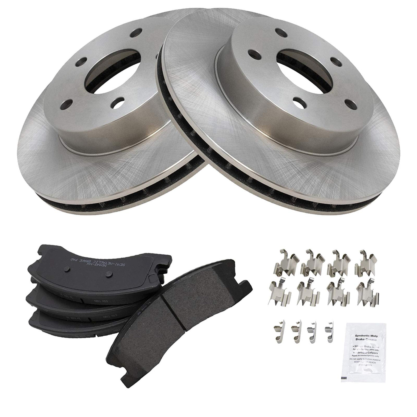 Semi-Metallic Brake Pad & Rotor KitKit Includes(1) Front Semi-Metallic Brake Pad Set(2) Front Brake RotorsFitmentCompatible with: 1999-02 Jeep Grand Cherokee Front with Akebono CalipersCompatible with: 2003-04 Jeep Grand Cherokee FrontProduct AttributesFront Brake Rotor Diameter: 12.01 in. (305mm)Wheel Lug Count: 5 LugBrake Pad Bonding Type: Premium PosiBrake Pad Friction Material: Semi-MetallicFront Brake Rotor Venting Type: VentedProduct Features Positive Molded - Less dust resulting in clean wheels G3000 Casting Alloy - Reduced noise and improved wear resistance Application Specific Design - Extended service life, no modificationsItem DetailsTRQ brake kits are designed to restore your brake system to like-new performance. TRQ brake pads are positive molded, thermal scorched, chamfered, and utilize a multi-layer shim for enhanced performance and service life. TRQ rotors have a non-directional finish that reduces the break-in period for new rotors as well as reducing vibrations throughout the rotors lifecycle. All products are fit and road-tested in our Massachusetts R&D facility to ensure we deliver on our promise of Trusted Reliable Quality.Reference NumbersAimco: 5118Bendix: PRT5254DuraGo: BR5118Jeep: 05093183AARaybestos Brakes: 76793, 76793FZN, 76793P, 76793PER, 76793R, EHT945H, PGD945M, SGD945M, SP945TRHWagner: BD125693