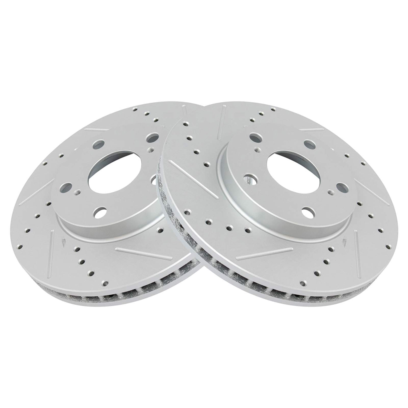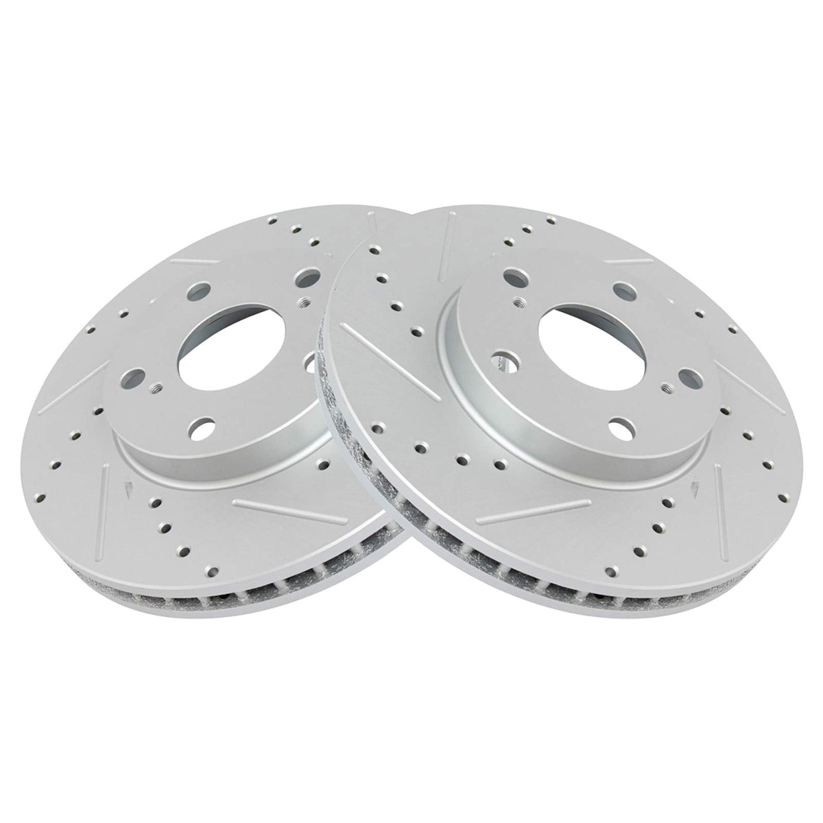 Trq Front Performance Brake Rotors Set Premium G-Coated Cross Drilled & Slotted Compatible With 1992-2001 Lexus Es300 1995-2004