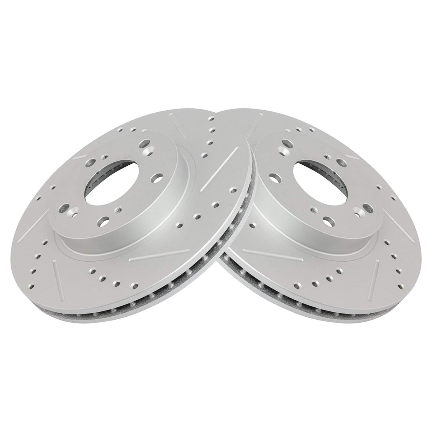 Trq Front Performance Brake Rotors Set Premium G-Coated Cross Drilled & Slotted Compatible With 2002-2004 Honda Cr-V