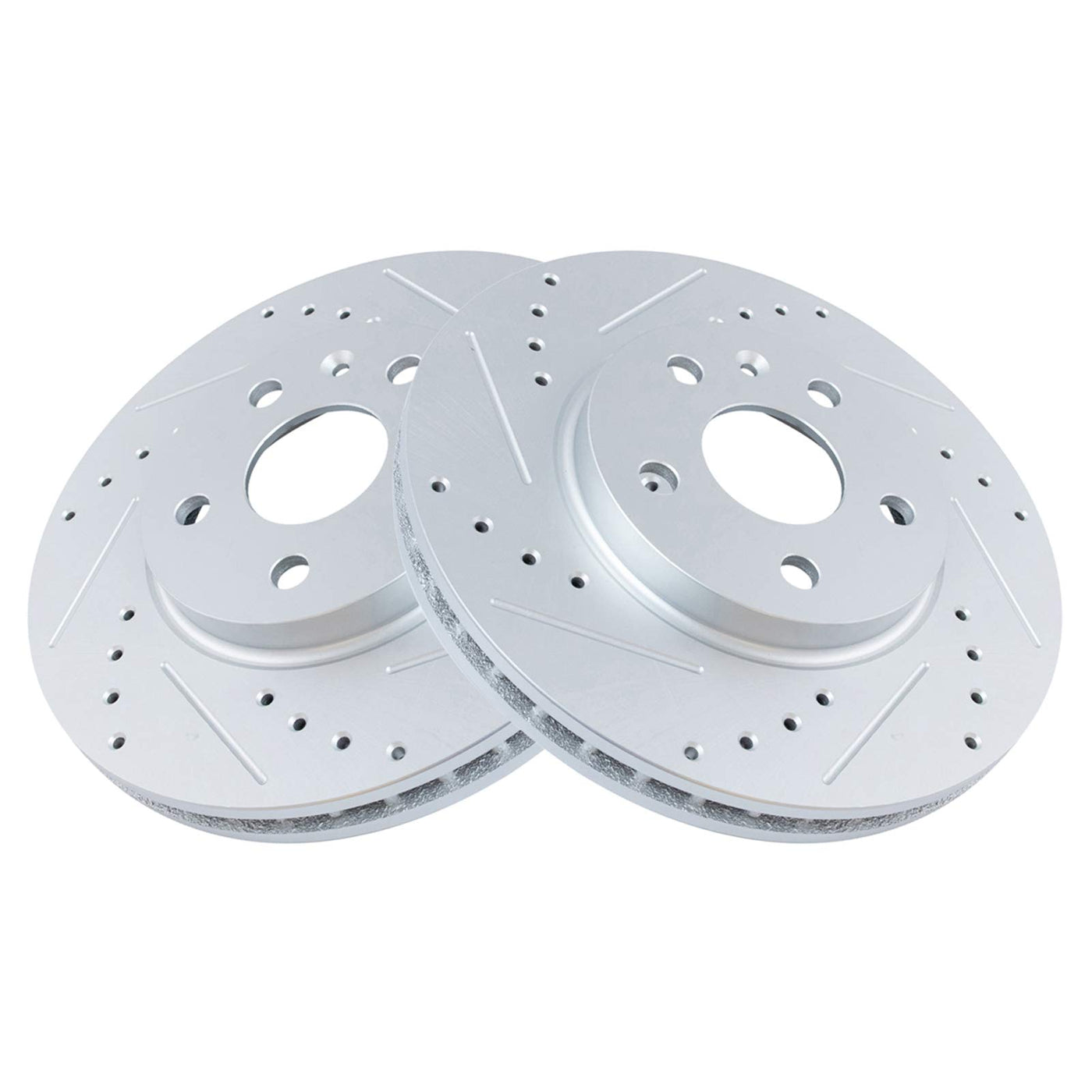 Trq Front Performance Brake Rotors Set Premium G-Coated Cross Drilled & Slotted Compatible With 2008-2014 Cadillac Cts