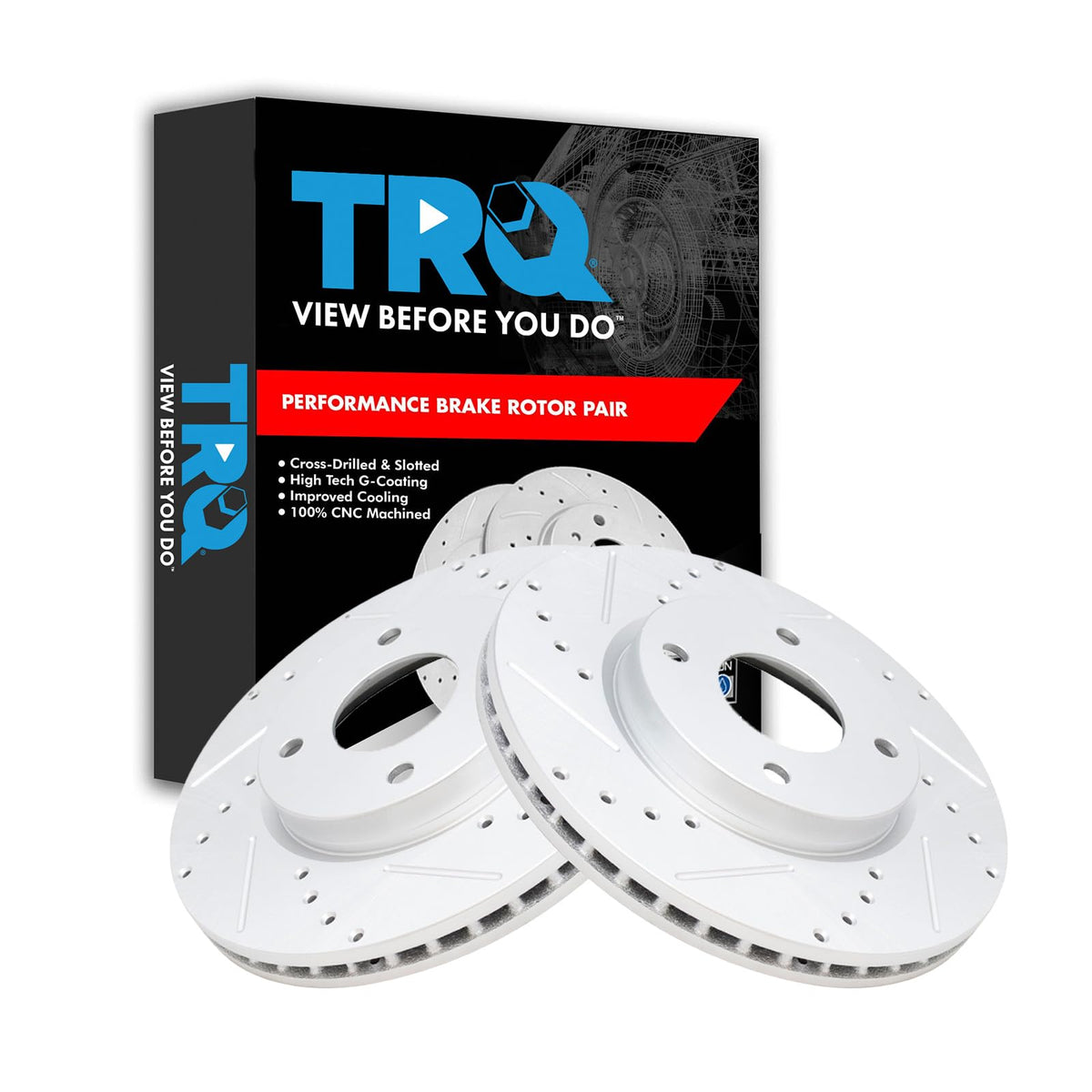 Trq Front Performance Brake Rotors Set Premium G-Coated Cross Drilled & Slotted Compatible With 2009-2014 Nissan Cube 2007-2012