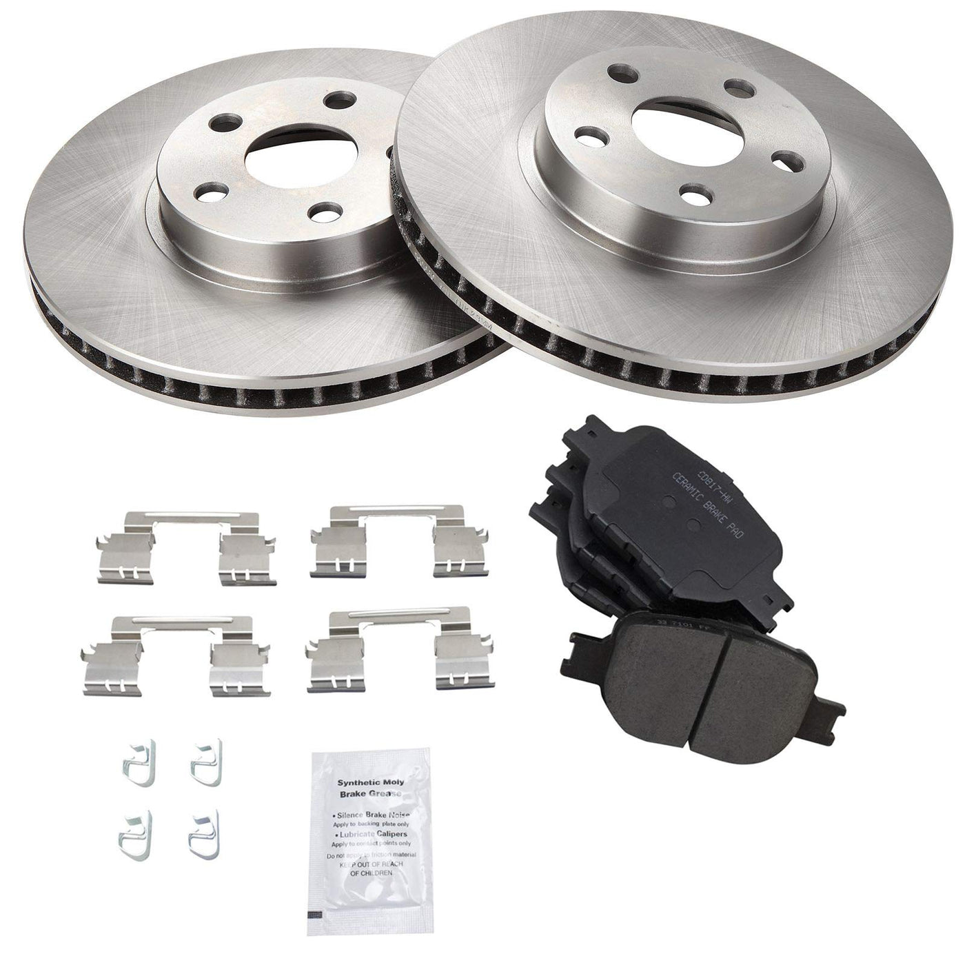 Trq Front Premium Posi Ceramic Brake Pad & Rotor Kit Compatible With 2000 Toyota Celica Gts 2001-2005 Toyota Celica 2005-2010 Sc