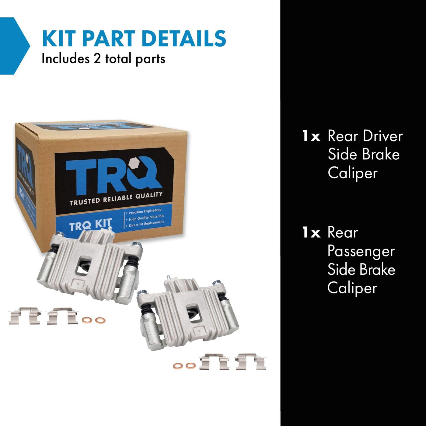 2 Piece Brake Caliper SetKit Includes(1) Rear Driver Side Brake Caliper(1) Rear Passenger Side Brake CaliperFitmentCompatible with: 1999-05 Pontiac Grand Am Rear Driver & Passenger SideCompatible with: 1999-04 Olds Alero Rear Driver & Passenger SideProduct AttributesQuantity: 2 PieceProduct Features Zinc Coated: Long lasting rust prevention EPDM Seals: Enhanced resistance to thermal deterioration No Core Charge: 100% new components Hardware and Abutment Kit Included: Complete repair in a single purchase Direct Replacement: No modifications necessaryItem DetailsTRQ brake calipers are made from premium raw materials designed to restore original performance. All TRQ calipers are new, so there will never be a core charge with your TRQ purchase. TRQ brake calipers include upgraded seals, washers, abutment kits and brackets where applicable to ensure a complete repair. TRQ recommends replacing your calipers in pairs with new brake pads and brake rotors to ensure components wear evenly and avoid multiple repairs of the same system. All products are fit and road-tested in our Massachusetts R&D facility to ensure we deliver on our promise of Trusted Reliable Quality.Reference NumbersACDelco: 18FR1587, 18FR1588CARDONE Reman: 18-B4724, 18-B4725DFC Calipers Outright Program - Archived: 331-52620, 331-52621Nugeon: 22-17308L, 22-17308RRaybestos Brakes: FRC11081, FRC11081N, FRC11082, FRC11082NUAP: C62561, C62562UCX: 14-4382, 14-4383