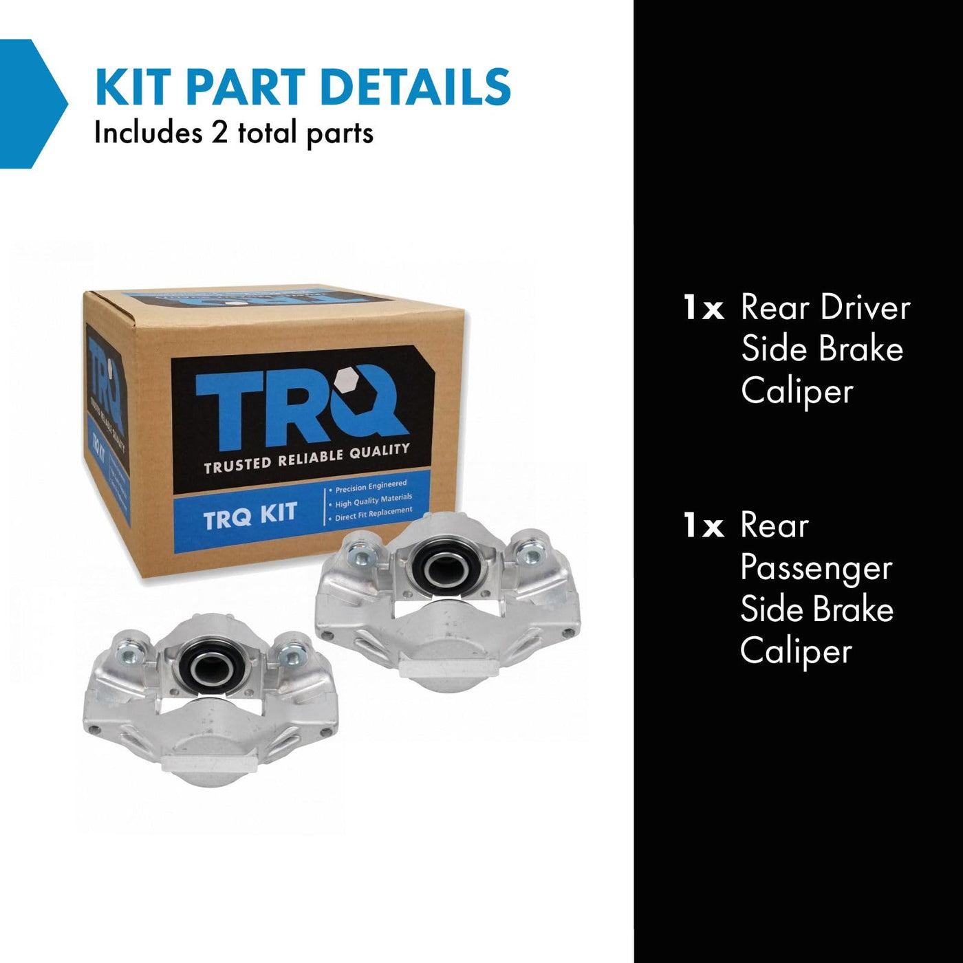 2 Piece Brake Caliper SetKit Includes(1) Rear Driver Side Brake Caliper(1) Rear Passenger Side Brake CaliperFitmentCompatible with: 2006-07 Subaru Impreza WRX Limited Rear Driver & Passenger SideCompatible with: 2006-07 Subaru Impreza WRX TR Rear Driver & Passenger SideCompatible with: 2006-07 Subaru Impreza WRX Rear Driver & Passenger SideProduct AttributesQuantity: 2 PieceProduct Features Zinc Coated: Long lasting rust prevention EPDM Seals: Enhanced resistance to thermal deterioration No Core Charge: 100% new components Hardware and Abutment Kit Included: Complete repair in a single purchase Direct Replacement: No modifications necessaryItem DetailsTRQ brake calipers are made from premium raw materials designed to restore original performance. All TRQ calipers are new, so there will never be a core charge with your TRQ purchase. TRQ brake calipers include upgraded seals, washers, abutment kits and brackets where applicable to ensure a complete repair. TRQ recommends replacing your calipers in pairs with new brake pads and brake rotors to ensure components wear evenly and avoid multiple repairs of the same system. All products are fit and road-tested in our Massachusetts R&D facility to ensure we deliver on our promise of Trusted Reliable Quality.Reference NumbersAbsco: ER2046K, ER2047KAutopart International: 1405-239366, 1405-239368, AA1193132, AA1193133Bendix: SL48074, SL48075CARDONE Reman: 19-3132, 19-3133DFC Calipers Outright Program - Archived: 331-13624, 331-13625Nugeon: 22-01336L, 22-01336ROMNIPARTS: 13021056, 13021057Subaru: 26692FE040, 26692FE050TruStar: 11-8600, 11-8601UAP: C47525, C47526Wagner Brake: CR141461Wearever: 19-3132, 19-3133WORLDPAC: N1040404710CAR, N1040404922CAR