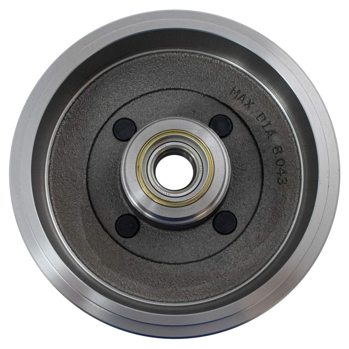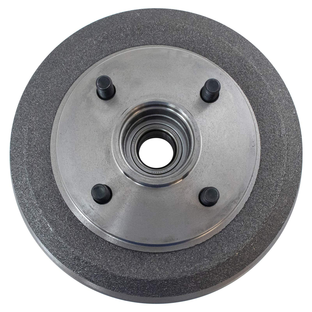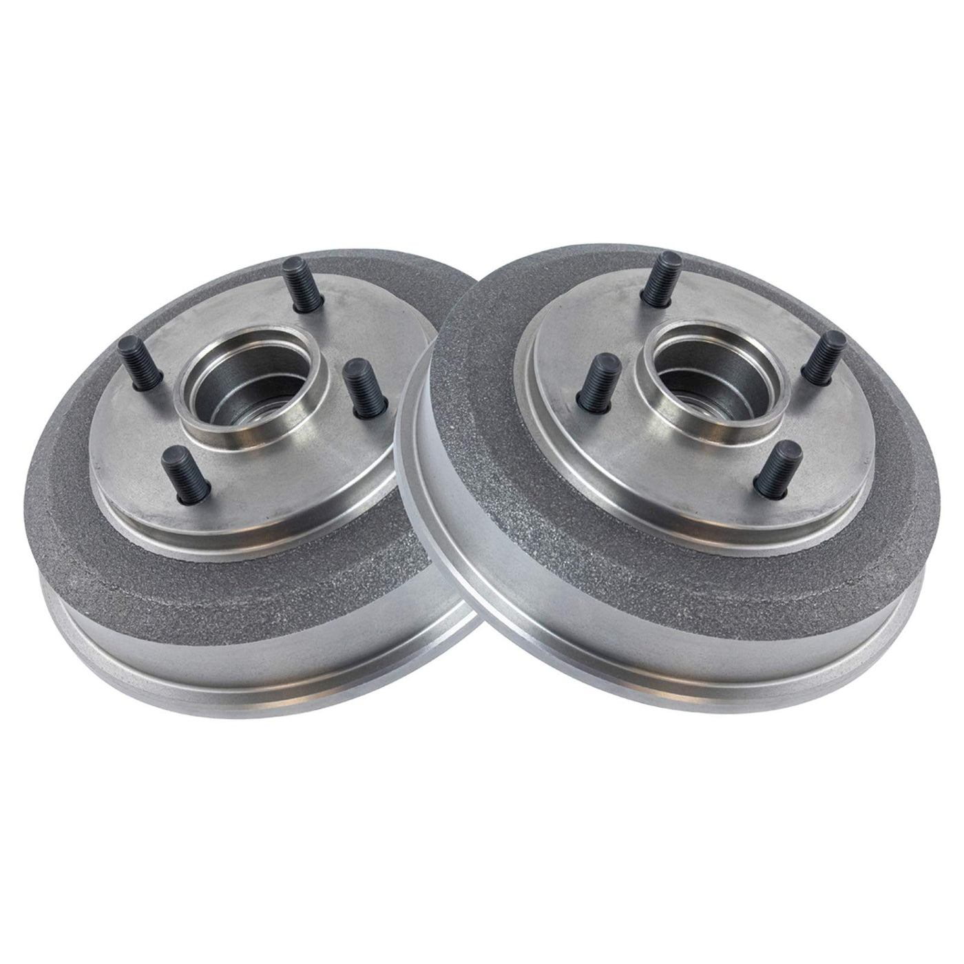 Q: What does the TRQ Brake Drum Set include?A: The TRQ Brake Drum Set includes two brake drums: one for the rear driver side and one for the rear passenger side, both equipped with wheel bearings.