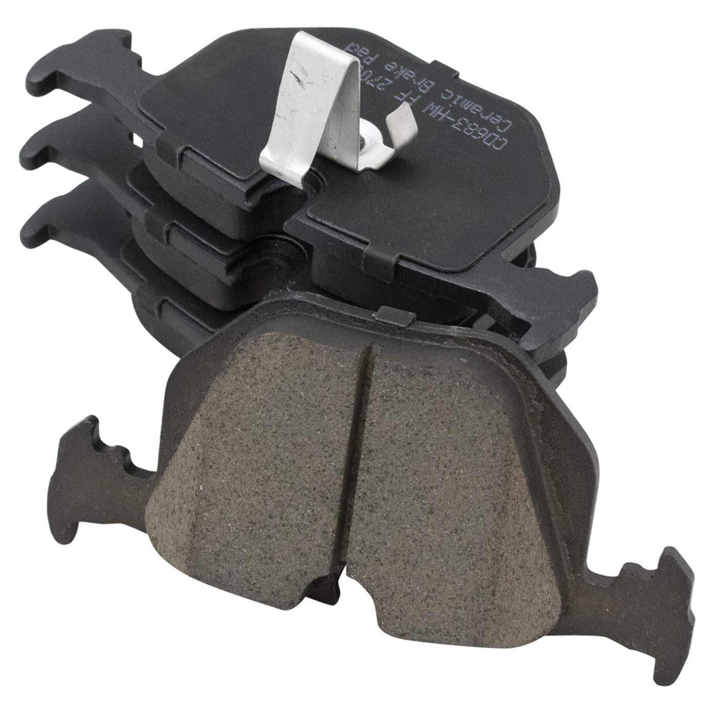 Ceramic Brake Pad & Rotor KitKit Includes(1) Rear Brake Pad Wear Sensor(1) Rear Ceramic Brake Pad Set(2) Rear Premium G-Coated Brake RotorsFitmentCompatible with: 2002-06 BMW X5 4.4i Rear with Solid Rear Rotors Ceramic Premium G-Coated Brake Pad & Rotor KitCompatible with: 2002-06 BMW X5 3.0i Rear with Solid Rear Rotors Ceramic Premium G-Coated Brake Pad & Rotor KitCompatible with: 2000-01 BMW X5 Rear Ceramic Premium G-Coated Brake Pad & Rotor KitProduct AttributesBrake Pad Friction Material: CeramicBrake Rotor Coating: Premium G-CoatedBrake Pad Bonding Type: Premium PosiProduct Features Positive Molded: Less dust resulting in clean wheels Electrostatic Coated: Long-lasting rust protection G3000 Casting Alloy: Reduced noise and improved wear resistance Application Specific Design: Extended service life, no modificationsItem DetailsTRQ brake kits are designed to restore your brake system to like-new performance. TRQ brake pads are positive molded, thermal scorched, chamfered, and utilize a multi-layer shim for enhanced performance and service life. TRQ G-coated rotors have long-lasting rust prevention, perfect for wheels with large openings that expose the rotor and rotor hat during daily drives. All products are fit and road-tested in our Massachusetts R&D facility to ensure we deliver on our promise of Trusted Reliable Quality.Reference NumbersBMW: 34211163324, 34211164581, 34211164582, 34213403241, 34216750160, 34216761240, 34216761248, 34216761250, 34351165580Land Rover: SFP000120Raybestos Brakes: EHT683Standard Ignition: PWS122