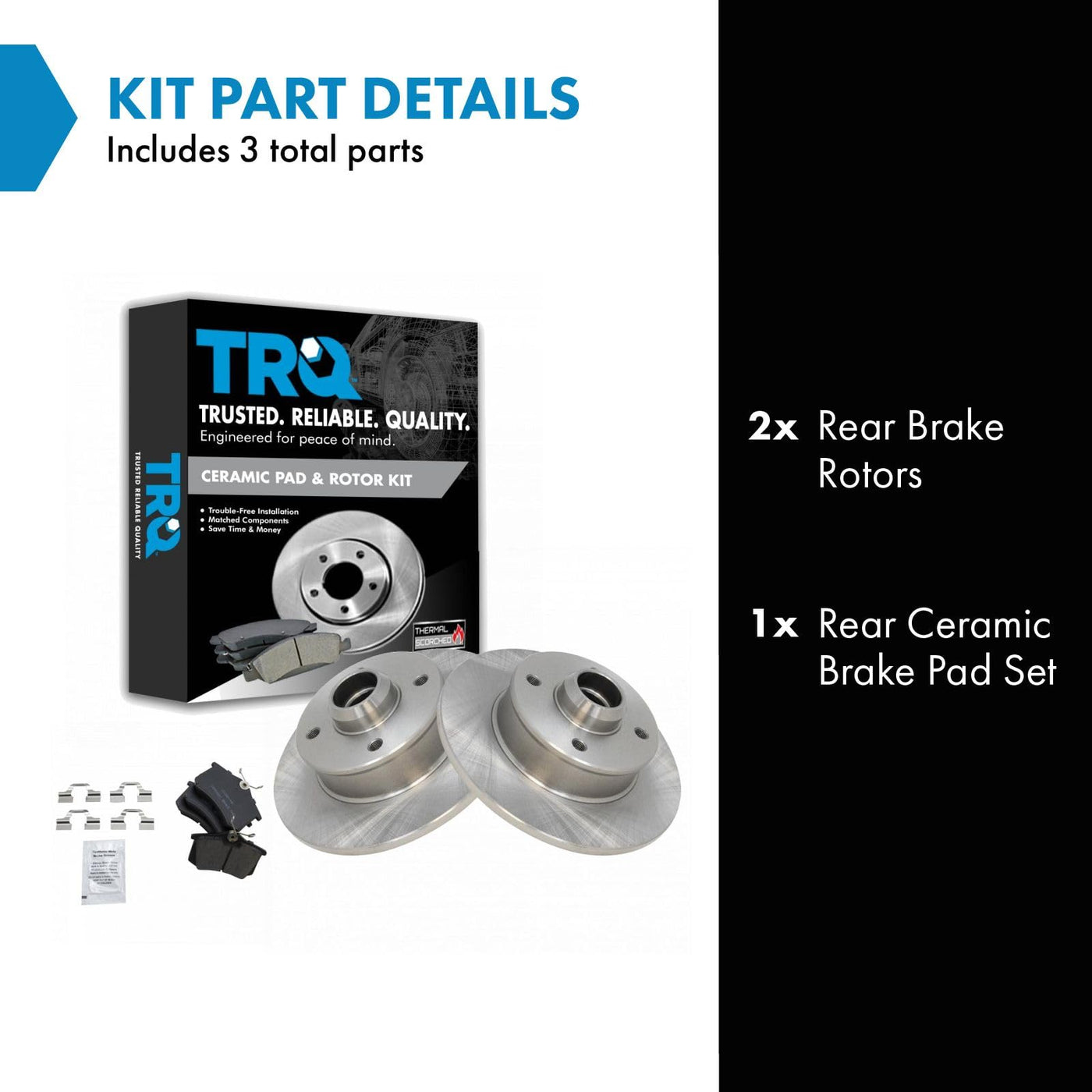Trq Rear Brake Pad & Rotor Kit Brake Pads Brake Rotor Ceramic Compatible With 1990-1992 Volkswagen Corrado 1988-1999 Golf 1985-1