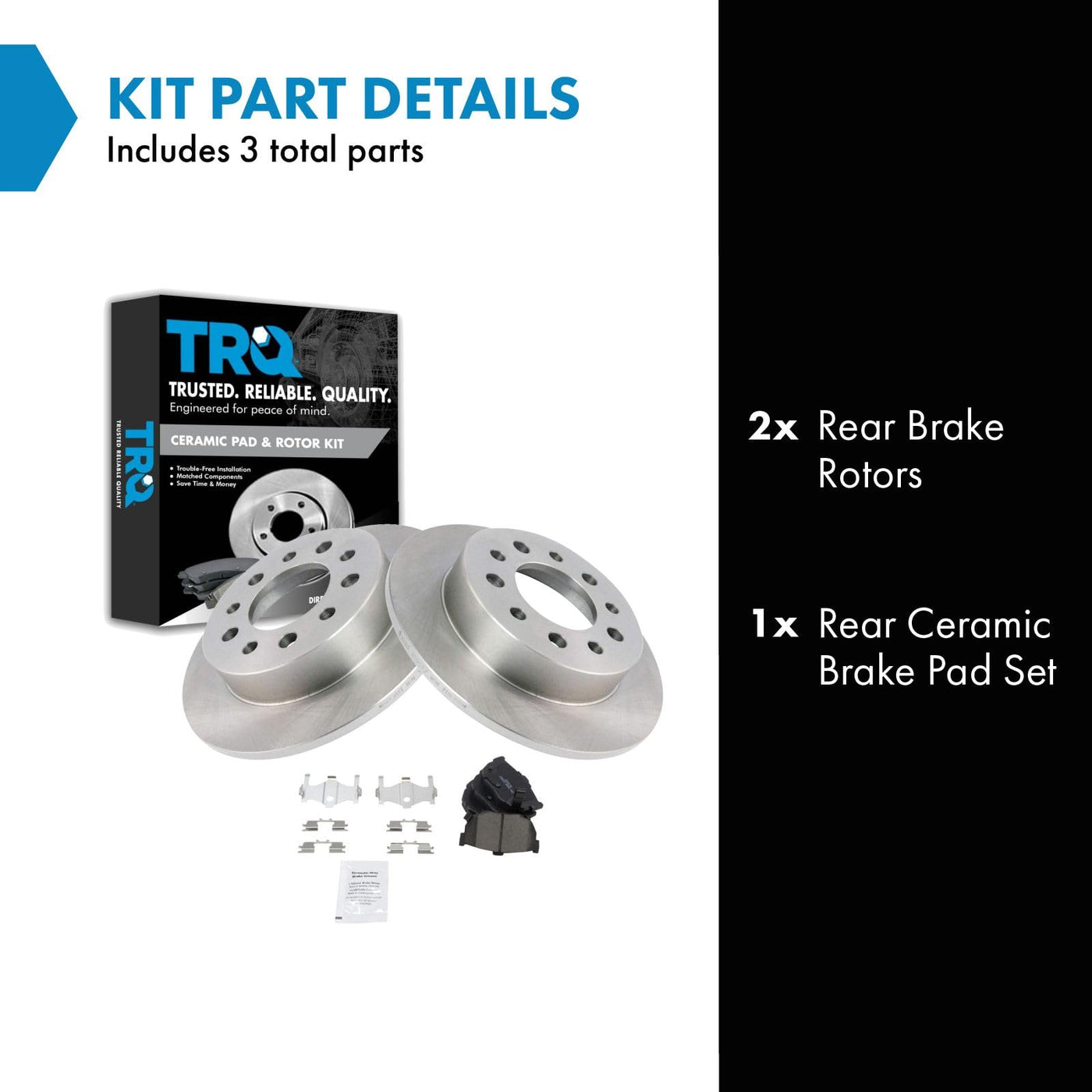 Trq Rear Brake Pad & Rotor Kit Brake Pads Brake Rotor Ceramic Compatible With 2003-2008 Hyundai Tiburon