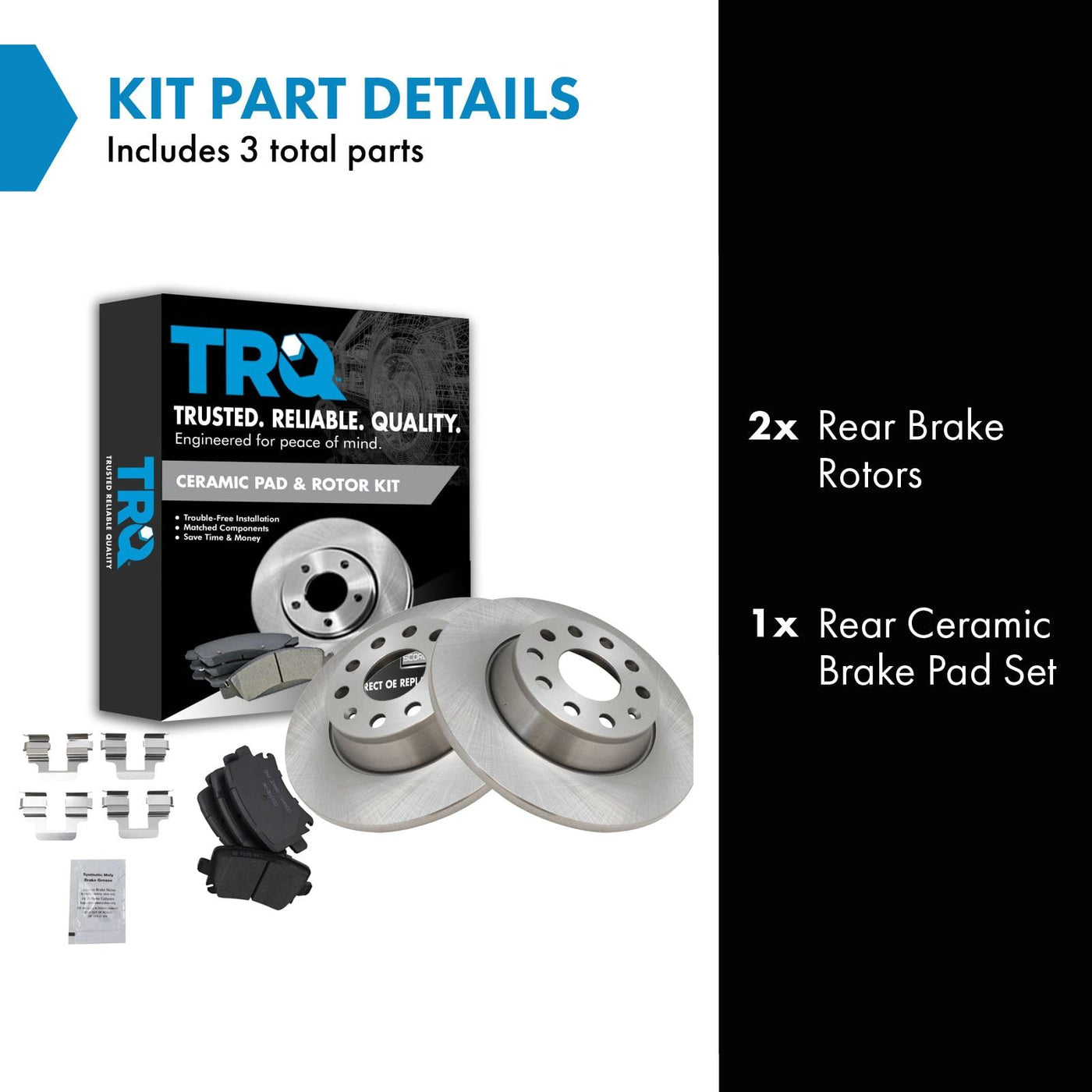 Trq Rear Brake Pad & Rotor Kit Brake Pads Brake Rotor Ceramic Compatible With 2009-2010 Audi A3 A3 Quattro 2009-2016 Volkswagen