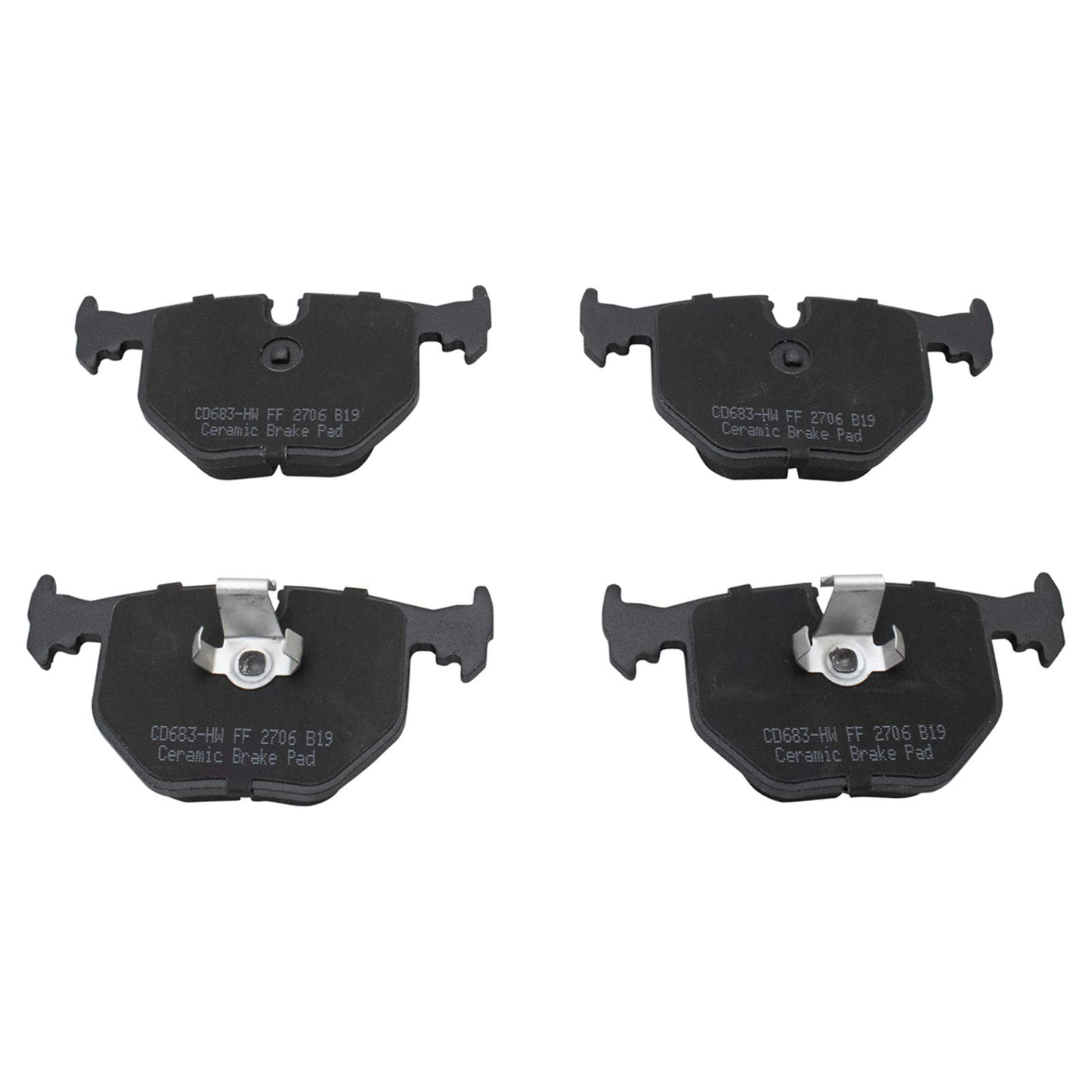 Ceramic Brake Pad & Rotor KitKit Includes(1) Rear Ceramic Brake Pad Set(2) Rear Premium G-Coated Brake RotorsFitmentCompatible with: 2002-06 BMW X5 L6 3.0L Rear with Solid Rear Rotors Ceramic Premium G-Coated Brake Pad & Rotor KitCompatible with: 2002-06 BMW X5 V8 4.4L Rear with Solid Rear Rotors Ceramic Premium G-Coated Brake Pad & Rotor KitCompatible with: 2000-01 BMW X5 Rear Ceramic Premium G-Coated Brake Pad & Rotor KitProduct AttributesRear Brake Rotor Diameter: 12.75 in. (324mm)Wheel Lug Count: 5 LugBrake Pad Friction Material: CeramicBrake Rotor Coating: Premium G-CoatedBrake Pad Bonding Type: Premium PosiRear Brake Rotor Venting Type: SolidProduct Features Positive Molded: Less dust resulting in clean wheels Electrostatic Coated: Long-lasting rust protection G3000 Casting Alloy: Reduced noise and improved wear resistance Application Specific Design: Extended service life, no modificationsItem DetailsTRQ brake kits are designed to restore your brake system to like-new performance. TRQ brake pads are positive molded, thermal scorched, chamfered, and utilize a multi-layer shim for enhanced performance and service life. TRQ G-coated rotors have long-lasting rust prevention, perfect for wheels with large openings that expose the rotor and rotor hat during daily drives. All products are fit and road-tested in our Massachusetts R&D facility to ensure we deliver on our promise of Trusted Reliable Quality.Reference NumbersBMW: 34211163324, 34211164581, 34211164582, 34213403241, 34216750160, 34216761240, 34216761248, 34216761250Land Rover: SFP000120Raybestos Brakes: EHT683
