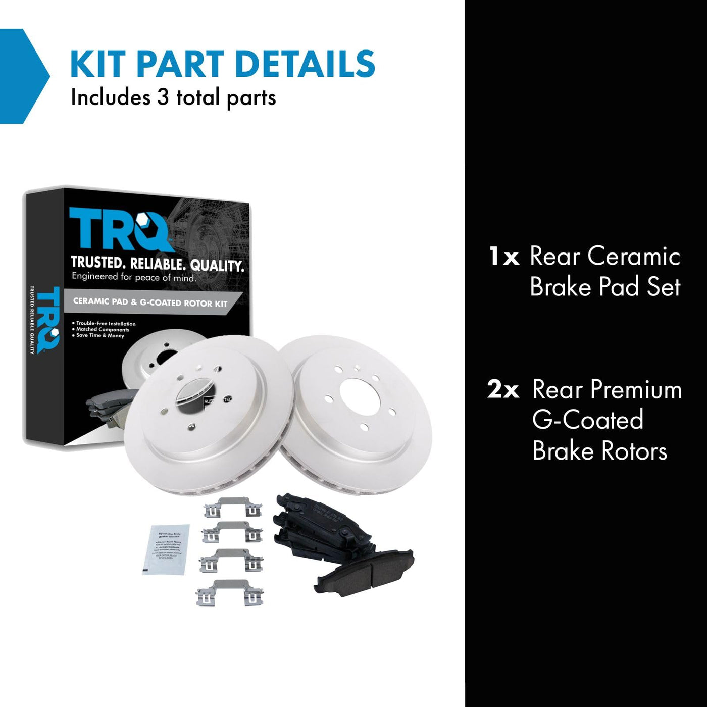 Trq Rear Brake Pad & Rotor Kit Brake Pads Brake Rotor Ceramic Premium G-Coated Compatible With 2003-2007 Cadillac Cts 2005-2011