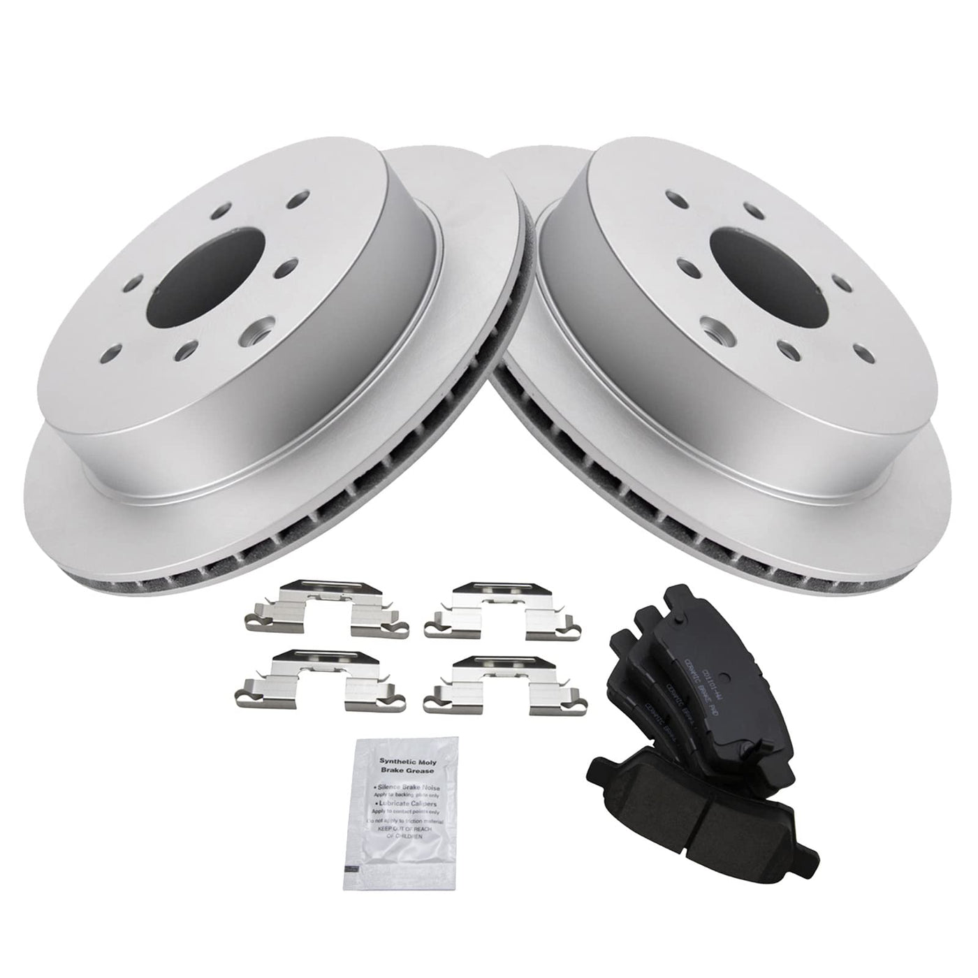 Ceramic Brake Pad & Rotor KitKit Includes(1) Rear Ceramic Brake Pad Set(2) Rear Premium G-Coated Brake RotorsFitmentCompatible with: 2006-07 Nissan Xterra Rear Ceramic Premium G-Coated Brake Pad & Rotor KitProduct AttributesRear Brake Rotor Diameter: 11.24 in. (285mm)Wheel Lug Count: 6 LugBrake Pad Friction Material: CeramicBrake Rotor Coating: Premium G-CoatedBrake Pad Bonding Type: Premium PosiRear Brake Rotor Venting Type: VentedProduct Features Positive Molded: Less dust resulting in clean wheels Electrostatic Coated: Long-lasting rust protection G3000 Casting Alloy: Reduced noise and improved wear resistance Application Specific Design: Extended service life, no modificationsItem DetailsTRQ brake kits are designed to restore your brake system to like-new performance. TRQ brake pads are positive molded, thermal scorched, chamfered, and utilize a multi-layer shim for enhanced performance and service life. TRQ G-coated rotors have long-lasting rust prevention, perfect for wheels with large openings that expose the rotor and rotor hat during daily drives. All products are fit and road-tested in our Massachusetts R&D facility to ensure we deliver on our promise of Trusted Reliable Quality.Reference NumbersAimco: 31410Nissan: 44060EA000, 44060EA091Raybestos Brakes: EHT1101H, MGD1101CH, SGD1101C