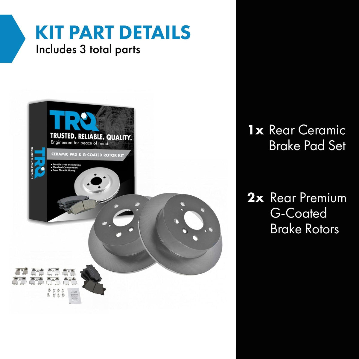 Trq Rear Brake Pad & Rotor Kit Brake Pads Brake Rotor Ceramic Premium G-Coated Compatible With 2007-2012 Lexus Es350 2008-2012 T