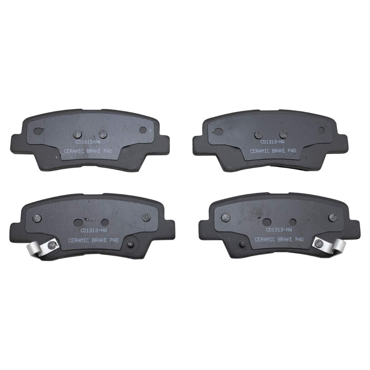 Ceramic Brake Pad & Rotor KitKit Includes(1) Rear Ceramic Brake Pad Set(2) Rear Premium G-Coated Brake RotorsFitmentCompatible with: 2009-10 Hyundai Sonata V6 3.3L Rear Ceramic Premium G-Coated Brake Pad & Rotor KitCompatible with: 2010-11 Hyundai Azera Rear Ceramic Premium G-Coated Brake Pad & Rotor KitProduct AttributesRear Brake Rotor Diameter: 11.14 in. (283mm)Wheel Lug Count: 5 LugBrake Pad Friction Material: CeramicBrake Rotor Coating: Premium G-CoatedBrake Pad Bonding Type: Premium PosiRear Brake Rotor Venting Type: VentedProduct Features Positive Molded: Less dust resulting in clean wheels Electrostatic Coated: Long-lasting rust protection G3000 Casting Alloy: Reduced noise and improved wear resistance Application Specific Design: Extended service life, no modificationsItem DetailsTRQ brake kits are designed to restore your brake system to like-new performance. TRQ brake pads are positive molded, thermal scorched, chamfered, and utilize a multi-layer shim for enhanced performance and service life. TRQ G-coated rotors have long-lasting rust prevention, perfect for wheels with large openings that expose the rotor and rotor hat during daily drives. All products are fit and road-tested in our Massachusetts R&D facility to ensure we deliver on our promise of Trusted Reliable Quality.Reference NumbersKia: 583023FA01Raybestos Brakes: EHT1313H, MGD1313CH, SGD1313C